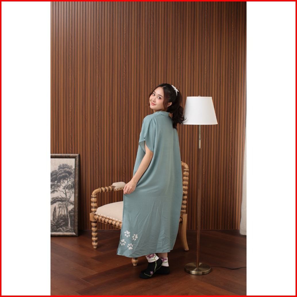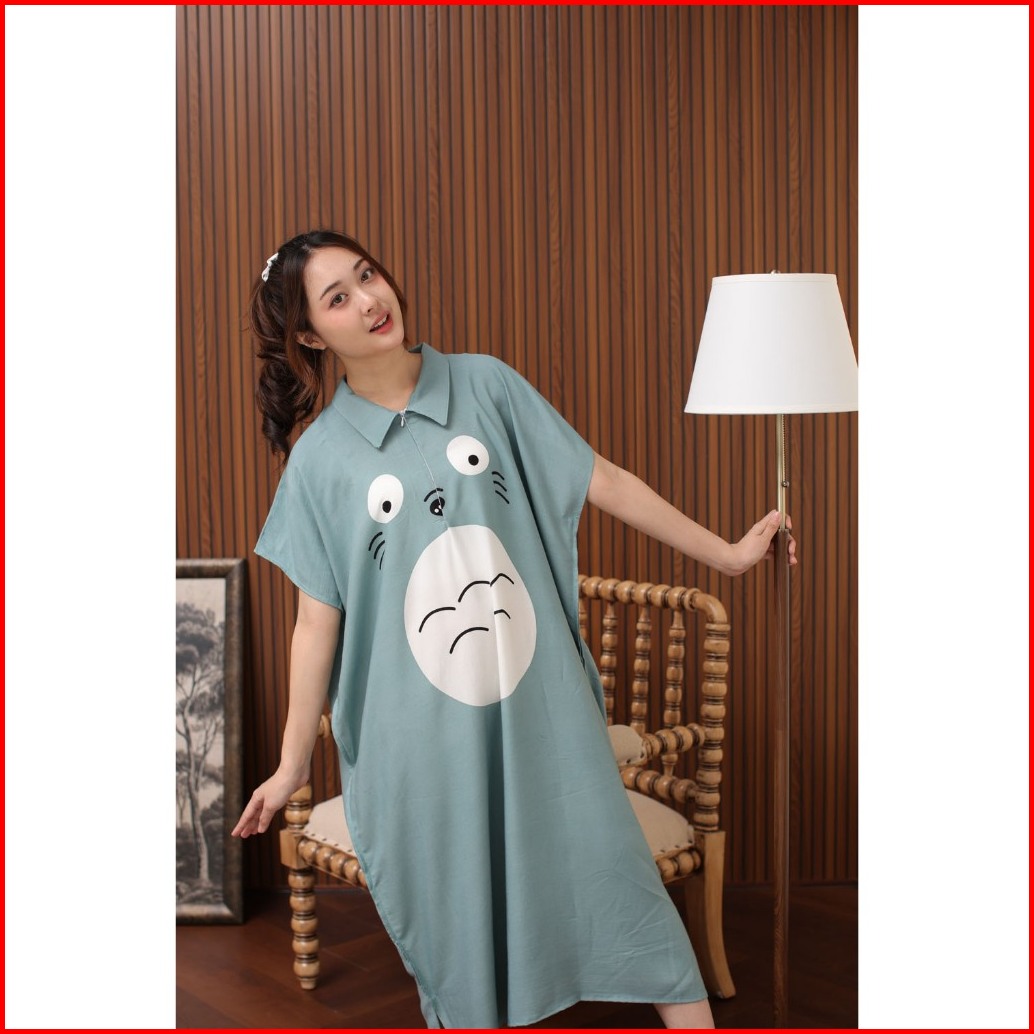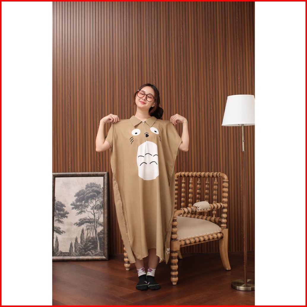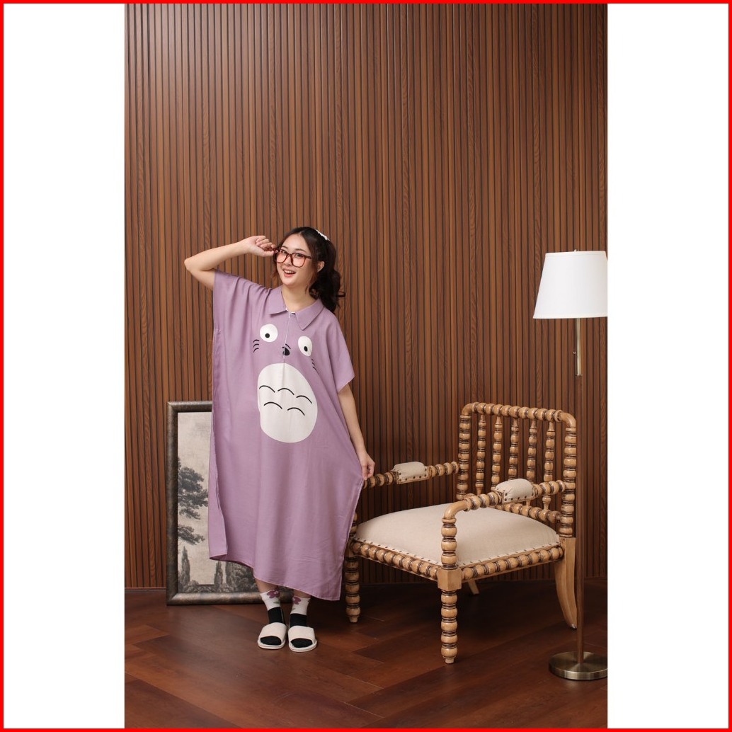 Daster Kerah Lowo Jumbo Zipper Busui Kitty Dress Viral Korea