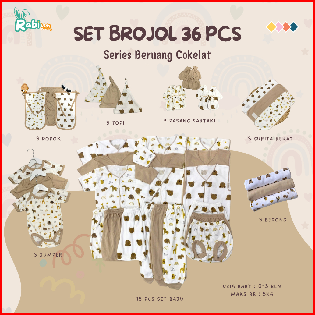 Paket Brojol Kumplit Hemat 36 Pcs Seri Beruang Cokelat Best Seller - Rekomendasi Paket Baju Bayi