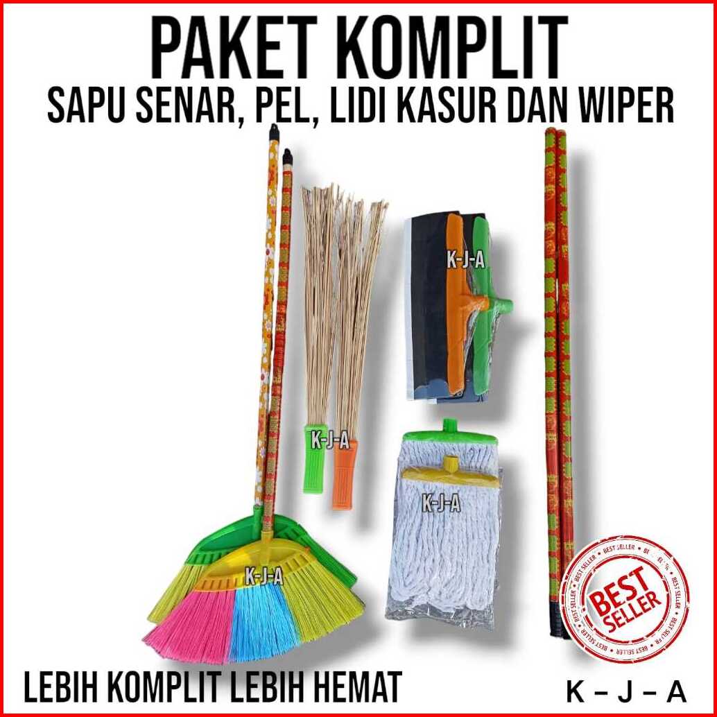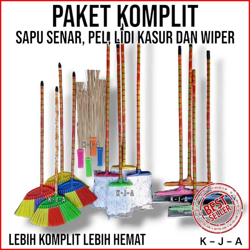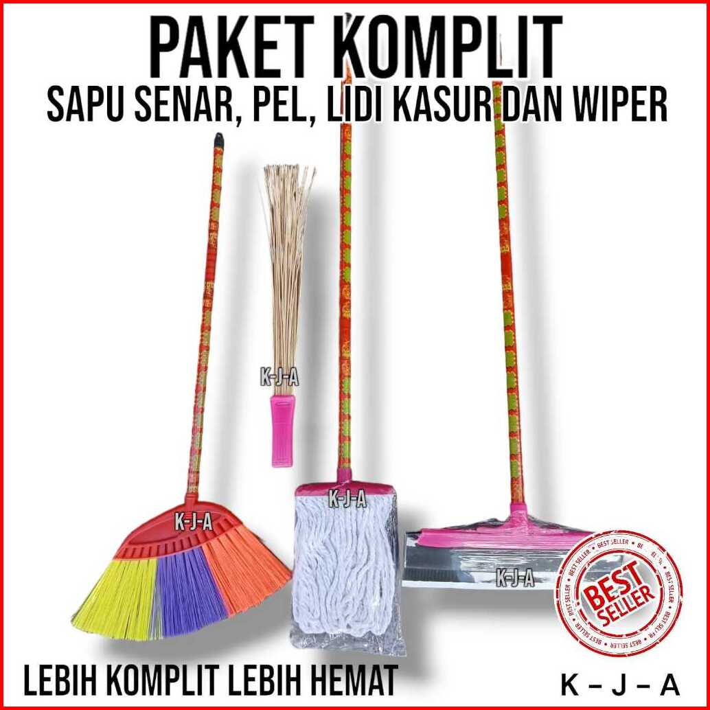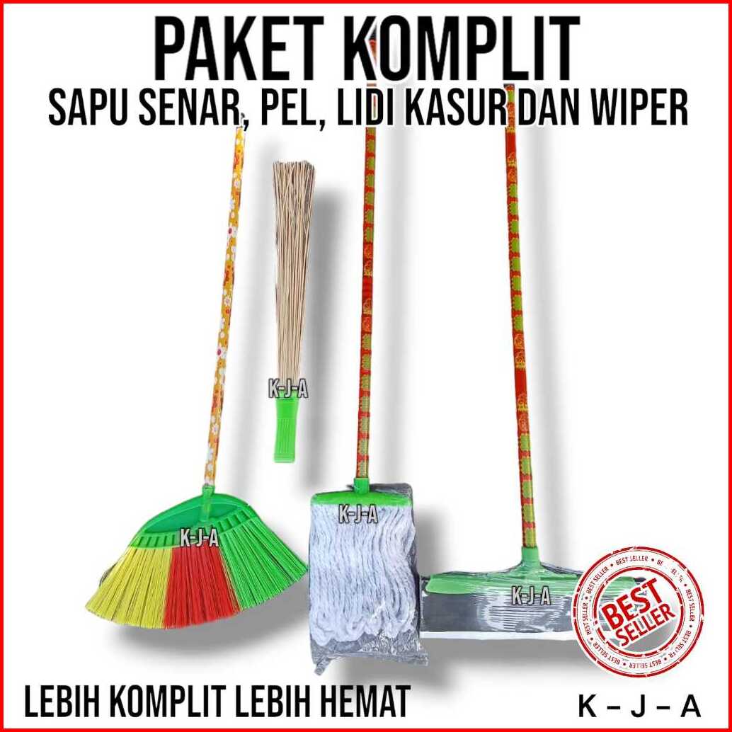 Paket Sapu Komplit Lidi Sapu Wiper Pel 4 Pc Barang Gagang Kain Pel Lantai