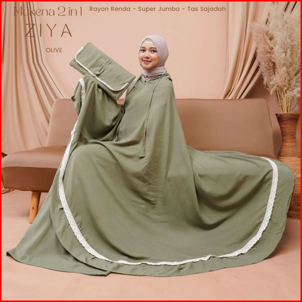 Mukena Dewasa Polos Renda Resliting Rayon Ziya Super Jumbo Traveling 2in1
