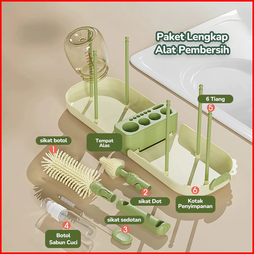 Sikat Botol Bayi 6 In 1 Set Travelling Sikat Botol Susu Portable Multifungsi Bpa Free