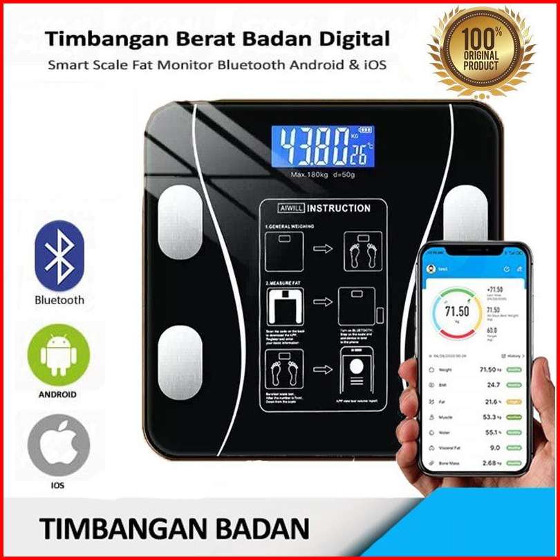 Timbangan Badan Digital Conect Bluetooth - Alat Pengukur Berat Badan Digital