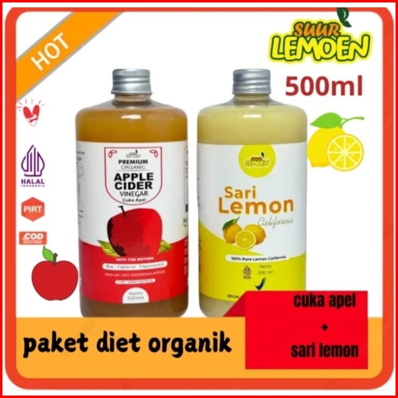 Paket Diet Sehat Bundling Cuka Apel 500 Ml Plus Sari Lemon Murni California 500 Ml By Suur Lemoen
