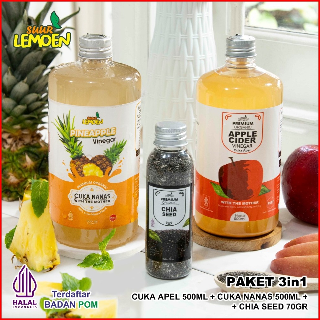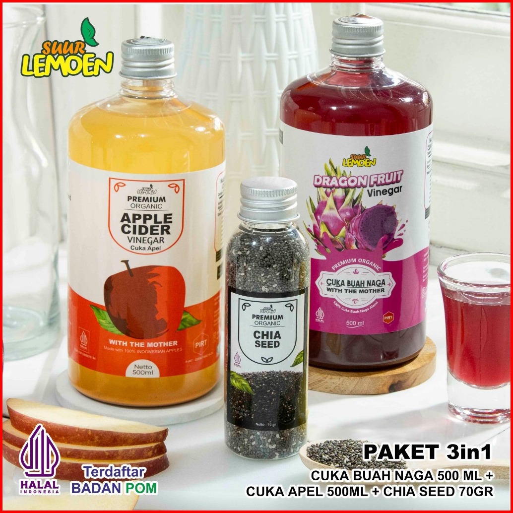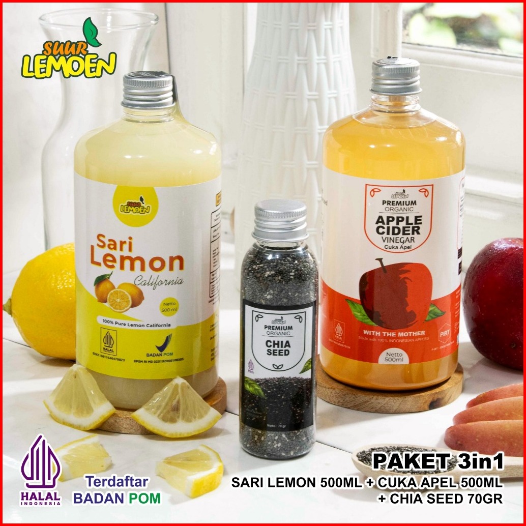 Suur Lemoen - Paket Diet 3in1 - Cuka Apel Original 500ml Sari Lemon Murni 500ml Chia Seeds 70gr