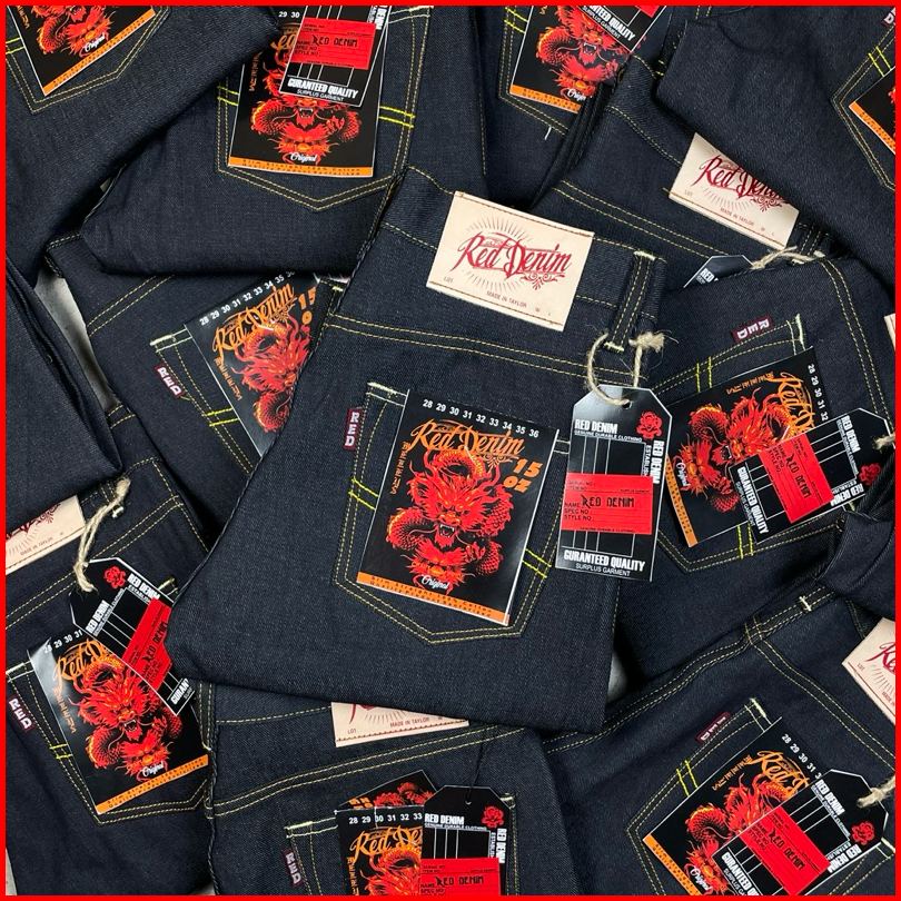 Red Denim - Denim Black Indigo 15oz Sanforized Raw Denim Accent Selvedge Original