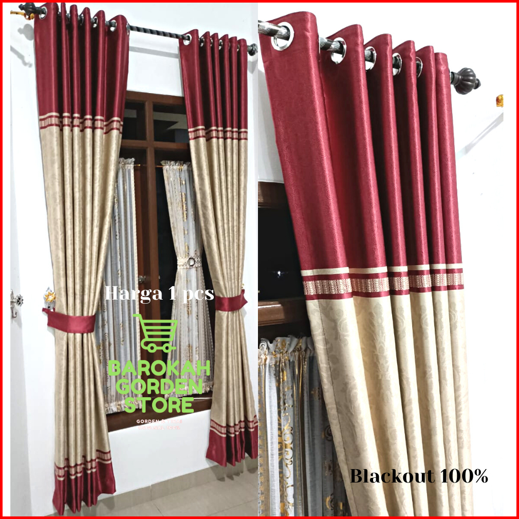 Gorden Tirai Jendela Gordeng Import Bludru Atas Bawah Motif Bunga 3d Blackout Original