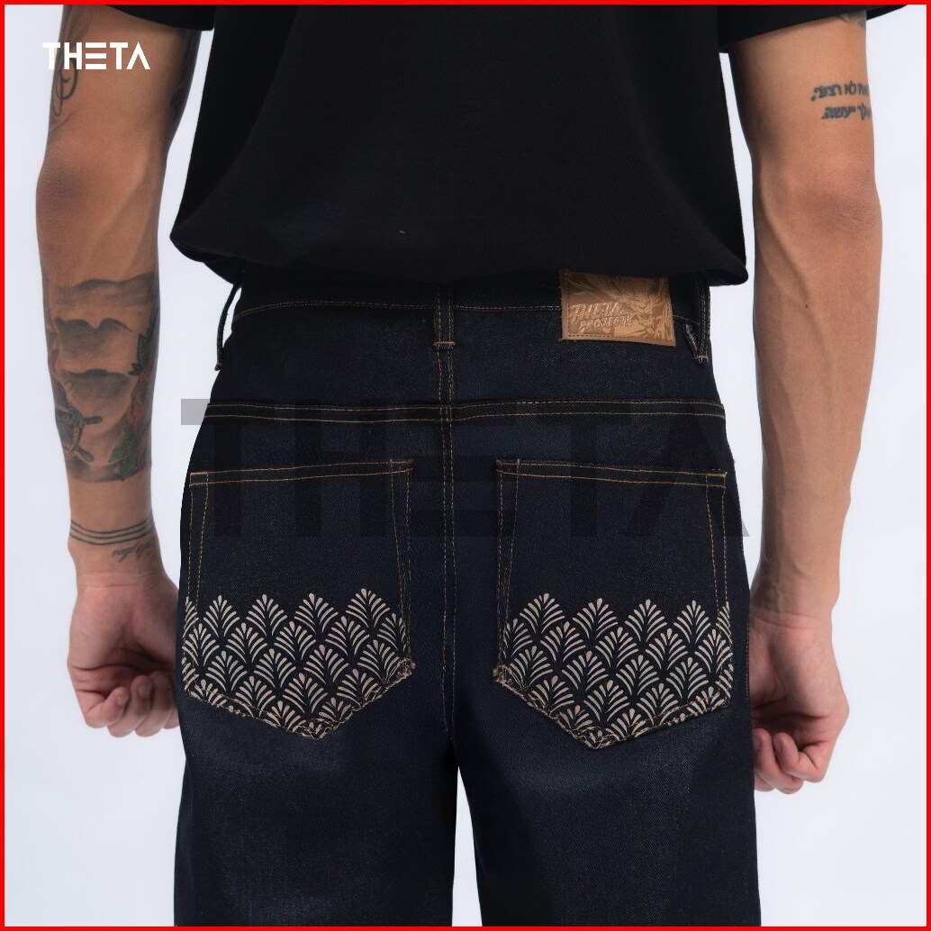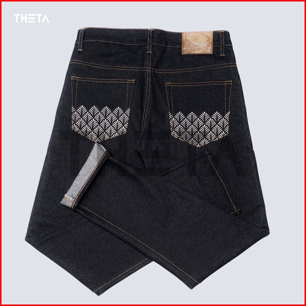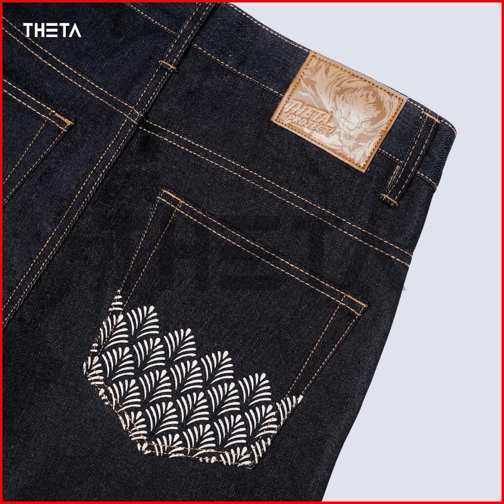 Theta Celana Raw Denim Black Indigo Accent Selvedge Slim Straight 15oz Sanforized - Nasus Best Seller