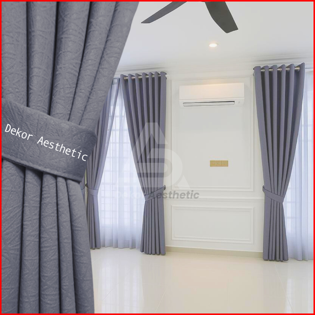 Gorden Jendela Modern Blackout Premium Lebar 12 Gelombang Warna Abu Abu Doff Serat Embos Polos