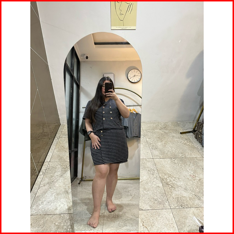 Yoo Ra One Set Rok Celana Rokcel Skort Busui Friendly Tweed Knit Joi Clothing -ready