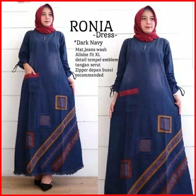 Victoria Maxy Aeni Dress Gamis Jeans Kekinian Terbaru Baju Wanita Muslimah Panjang