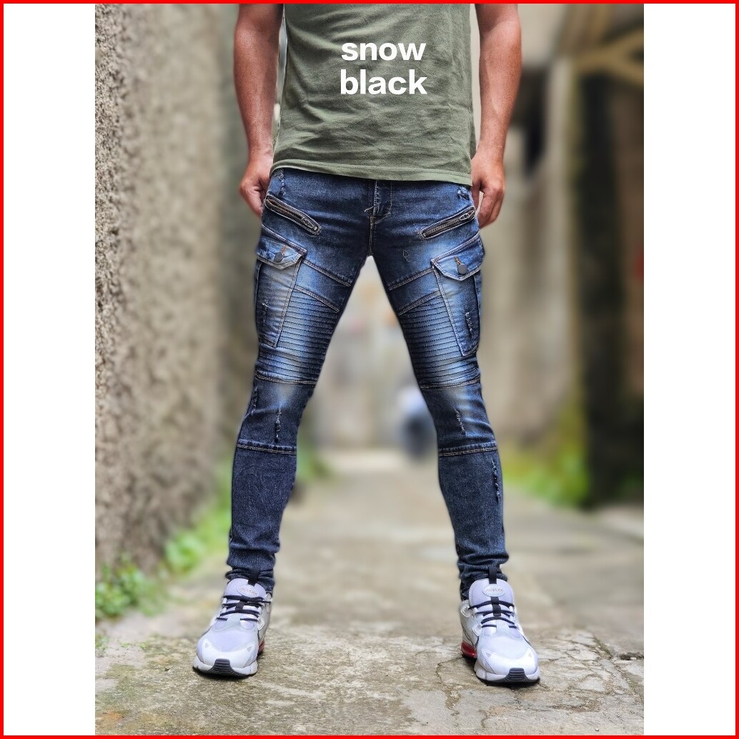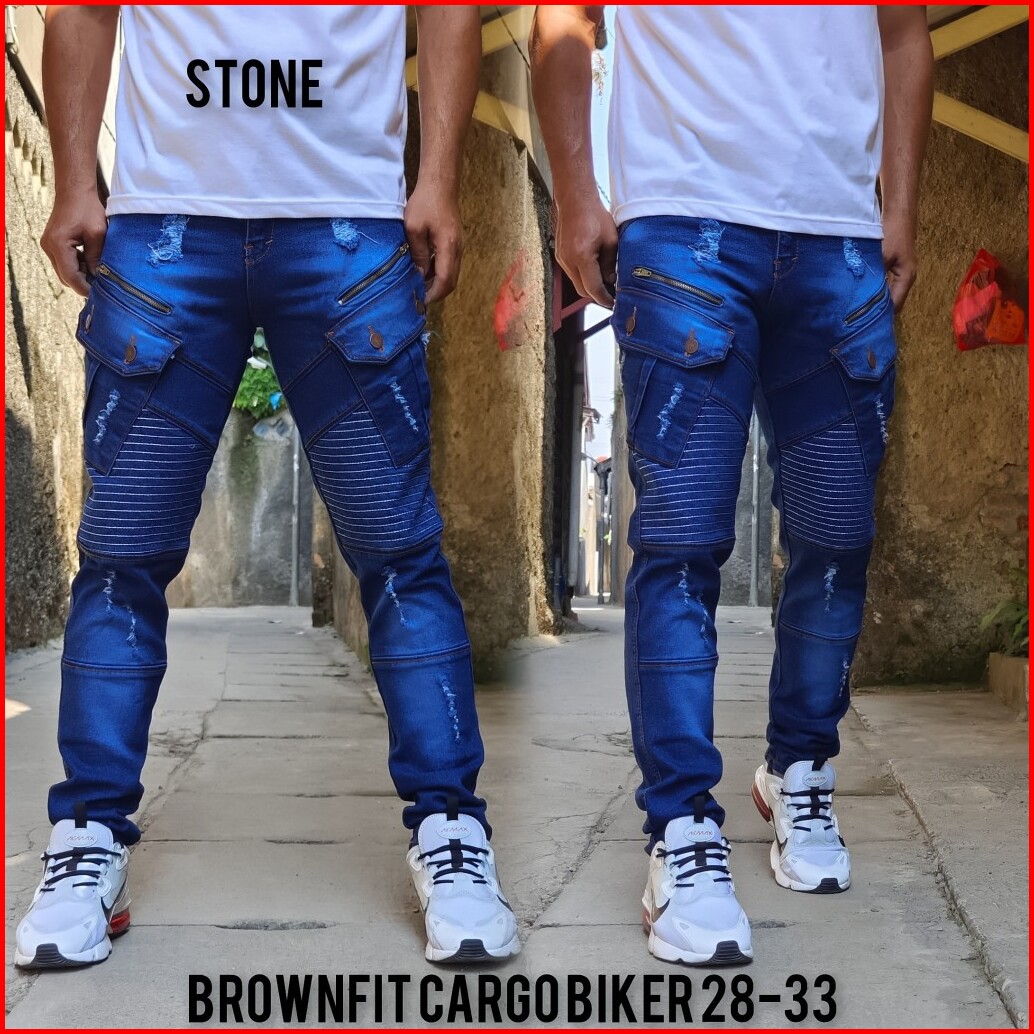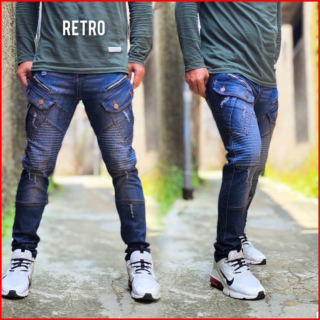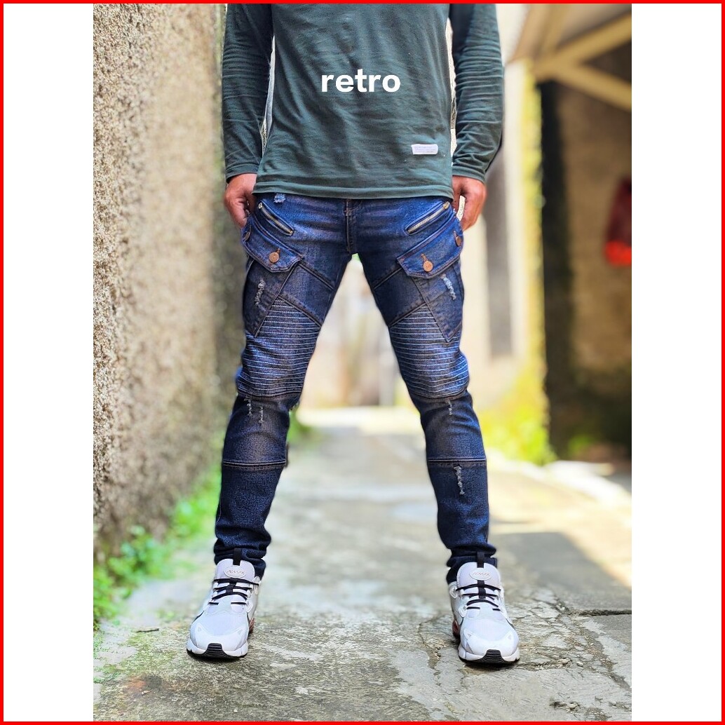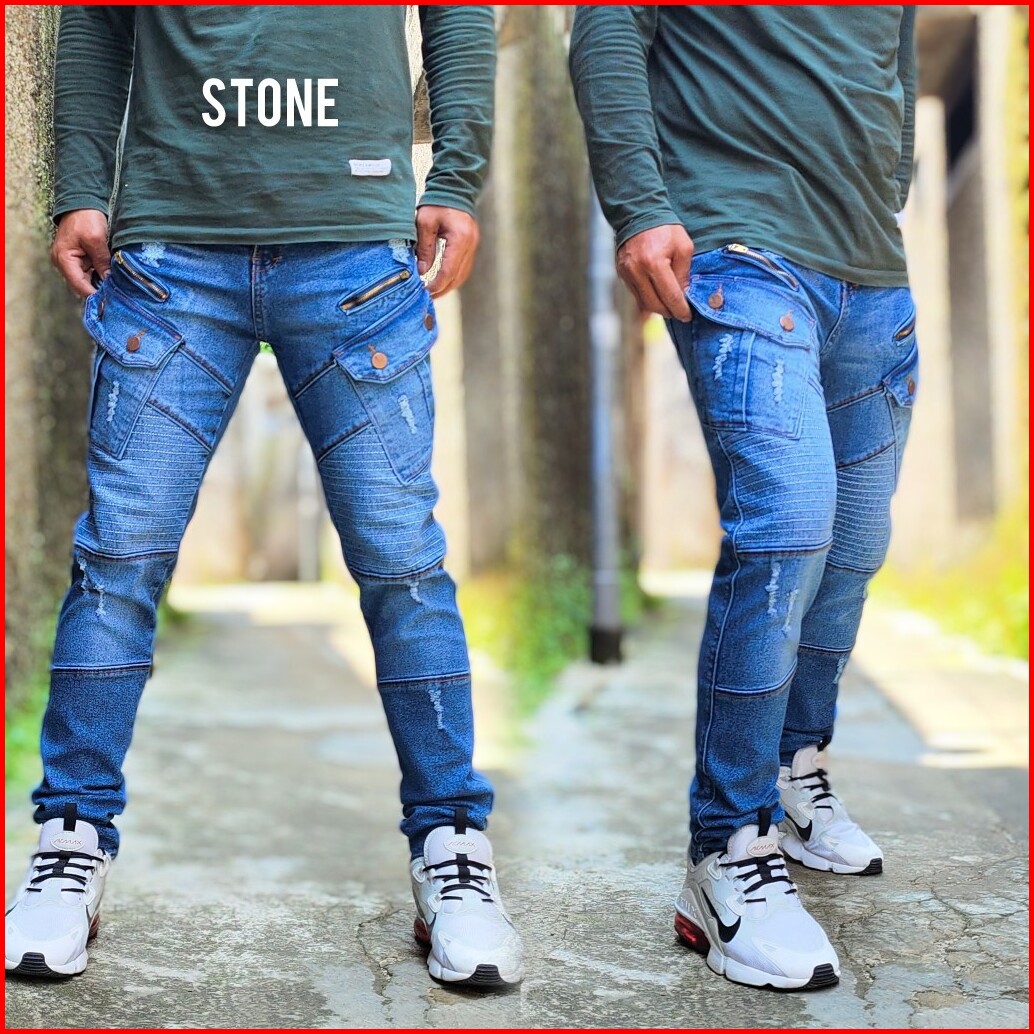 Cargo Denim Panjang Pria Biker Garis Sleting Kekinian Celana Jeans Kargo