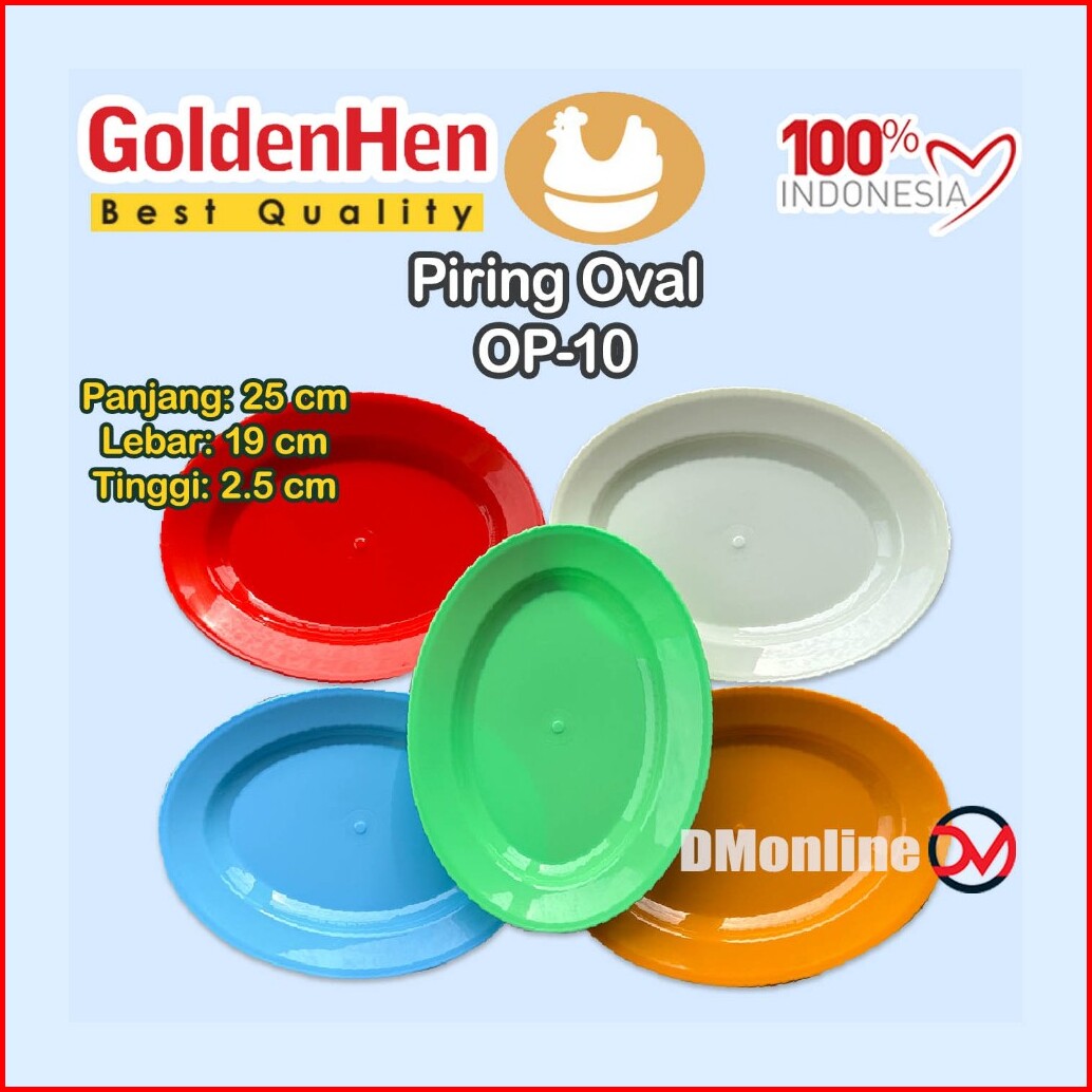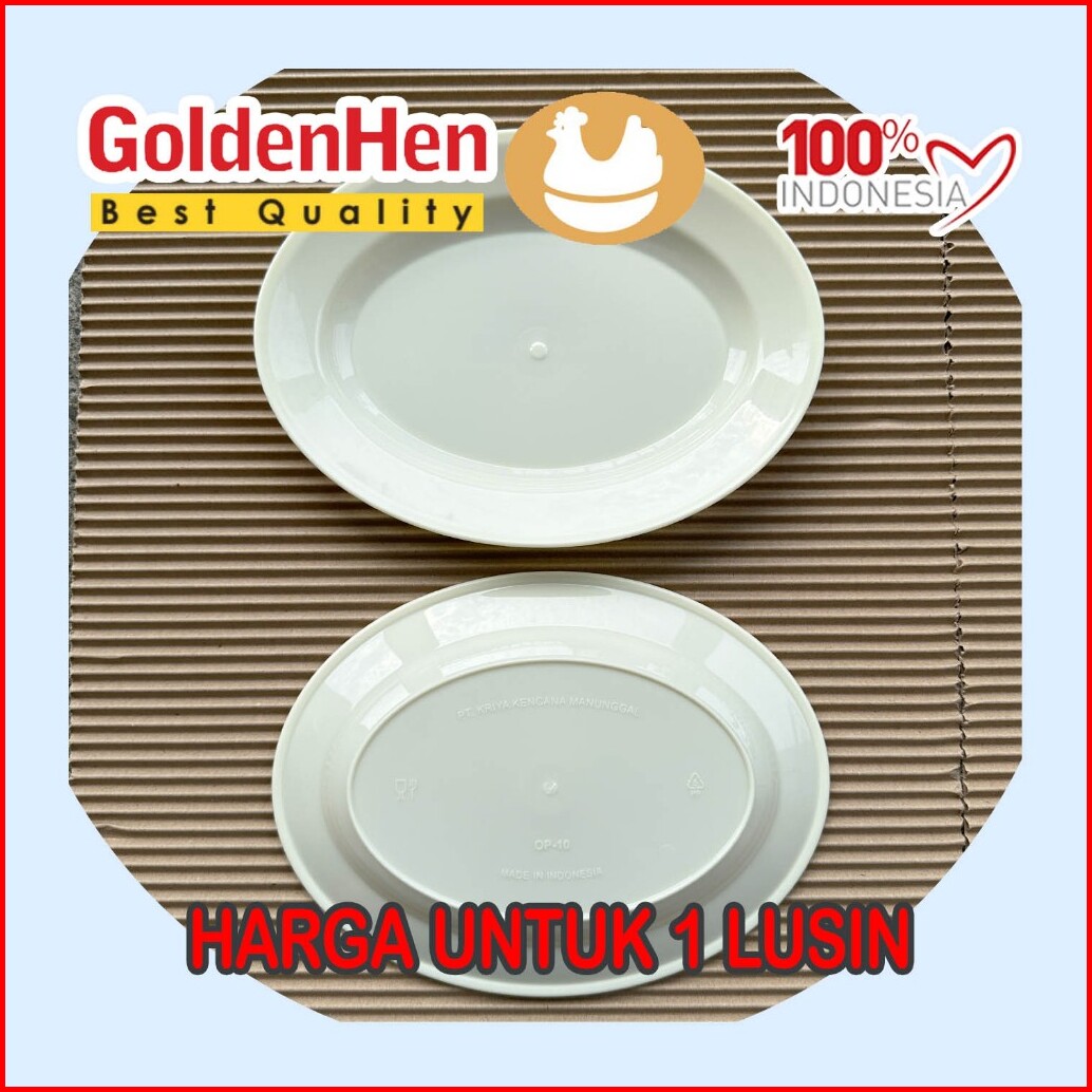 Op-10 12pcs Piring Plastik Oval 25cm 10inch Golden Hen Piring Saji Lonjong Lodor Goldenhen