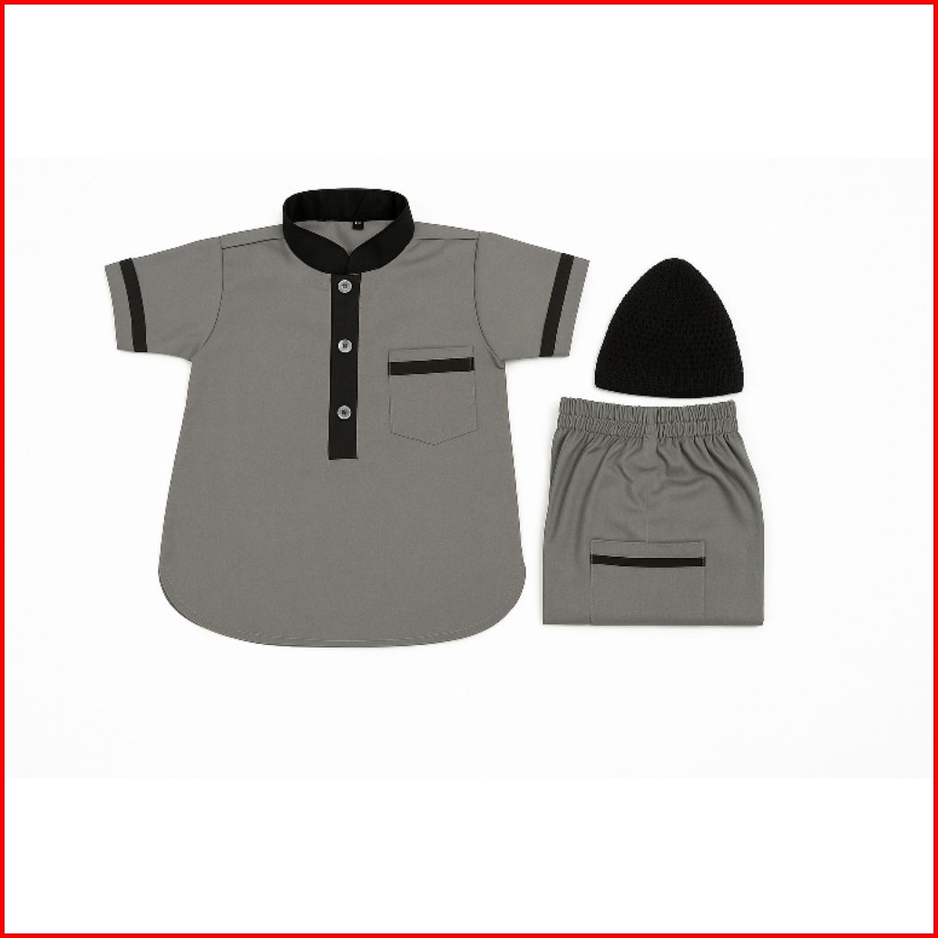 Stelan Baju Koko Bayi Kurta 02 Tahun Baju Muslim Anak Laki Gratis Peci Rajut Model Lengan Pendek Katun Toyobo Adem Lembu