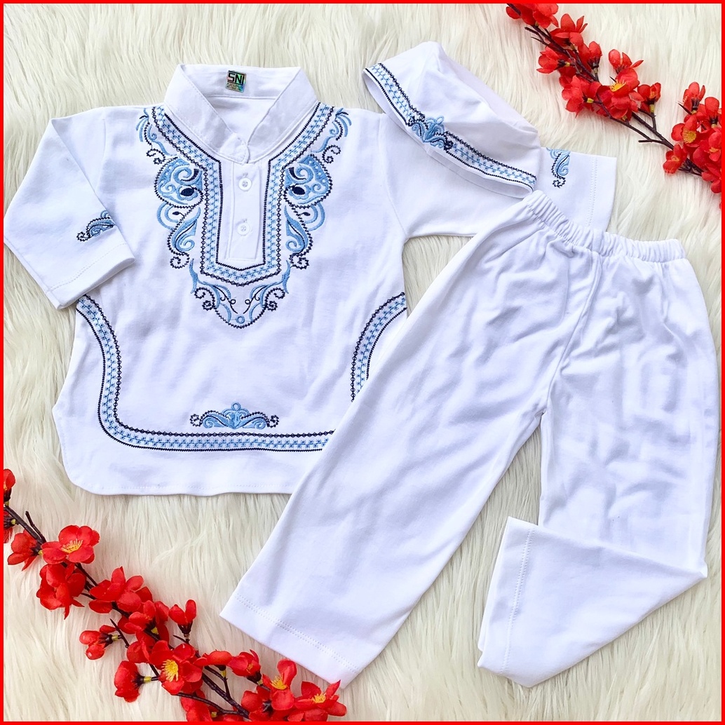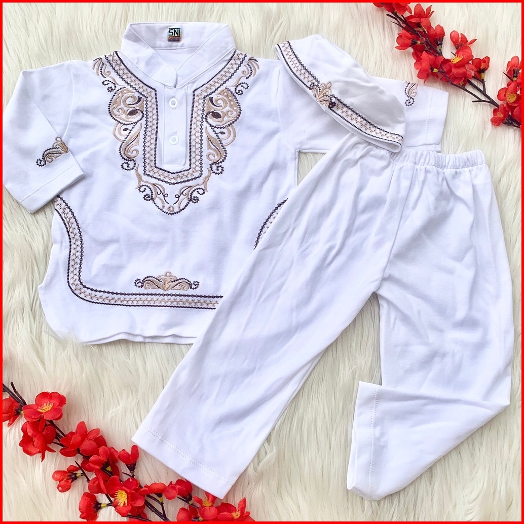 Baju Koko 6-18 Bulan Motif Bagus Besteller Putih Lebaran Idul Fitri Anak Bayi Cowok Laki Murah -kok