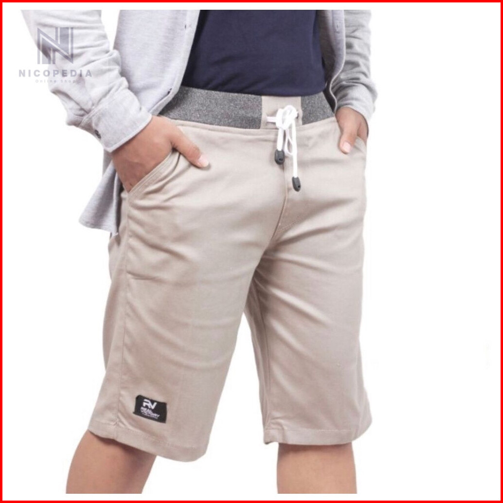 Celana Pendek Pria Cowok Dewasa Chino Rip Karet Pinggang Kolor Chinos Katun Nicopedia