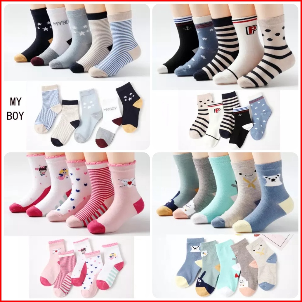 Paket 6 Pasang Kaos Kaki Anak Motif Karakter Lucu Cowok Cewek Random Bahan Lembut Harga Murah