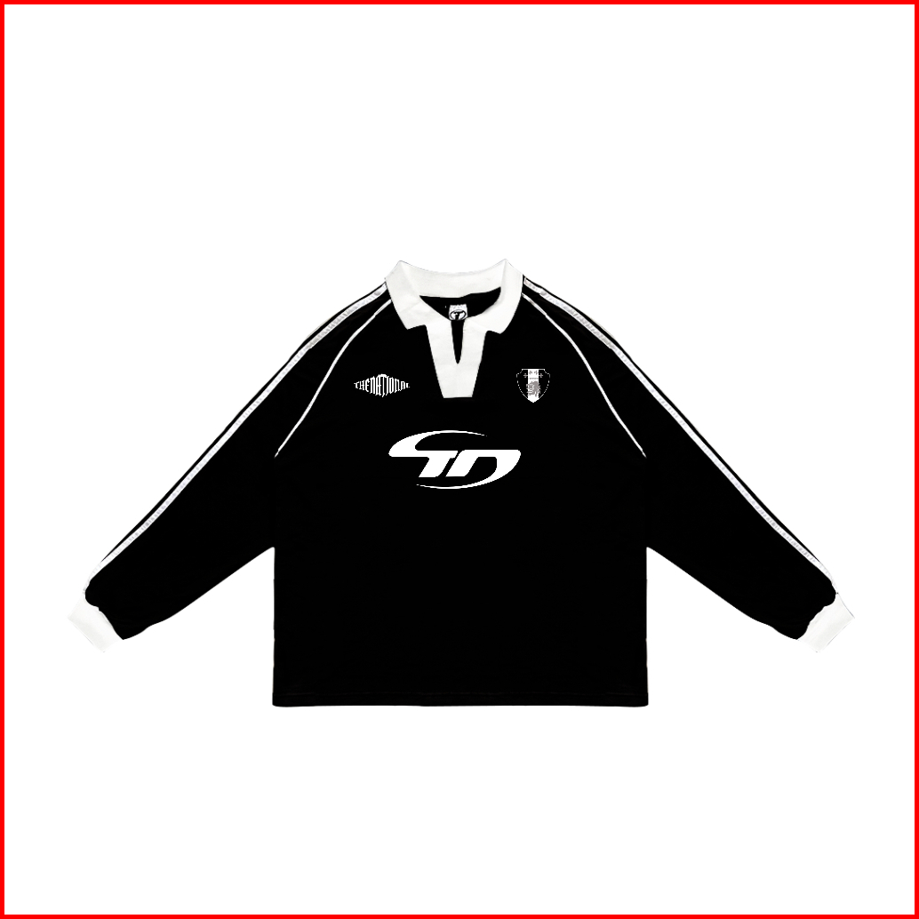 Thenational Longsleeve Boxy Line Crop 24s Tshirt Grander Black Lengan Panjang