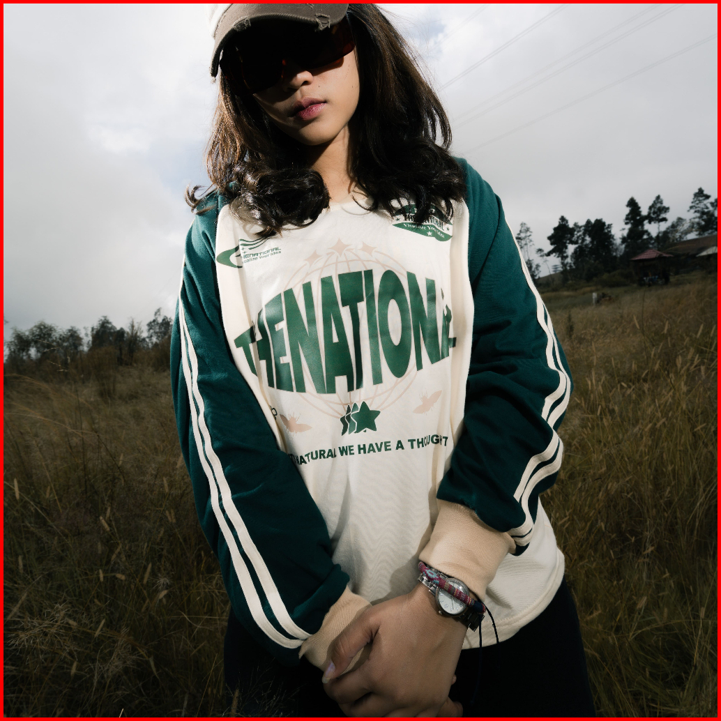 Thenational Longsleeve Boxy Line Crop Tshirt 24s Nature Lengan Panjang