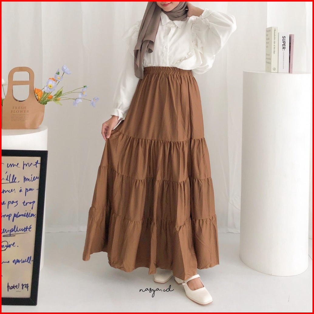Selia Rok Rempel Ceruty Babydoll Premium Rok Susun Ruffle Maxi Skirt Panjang Ima Skirt - Flottilicious Rok Flow Casual W