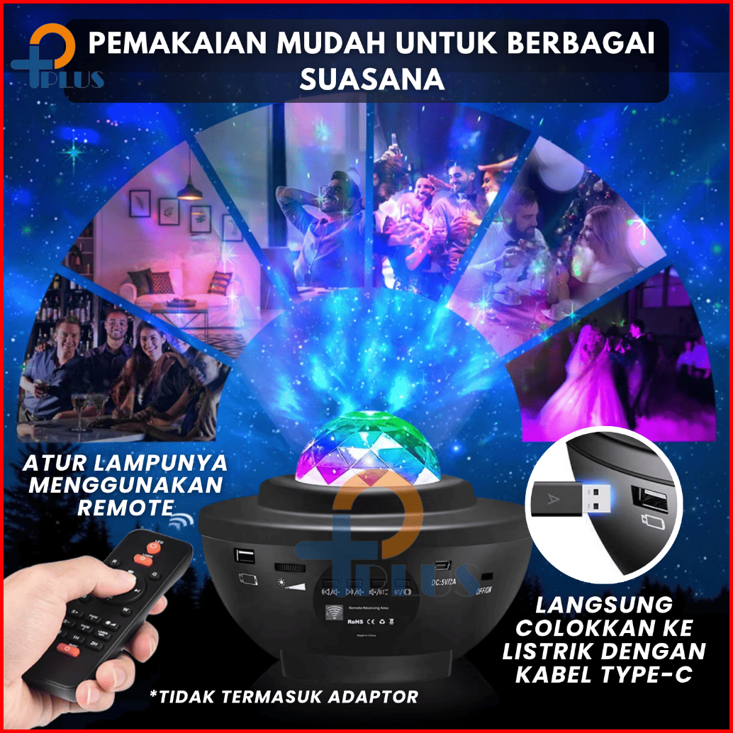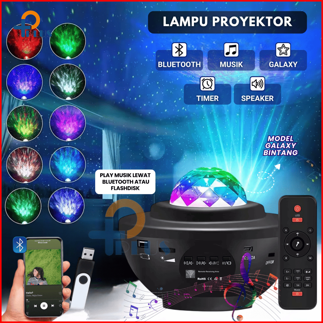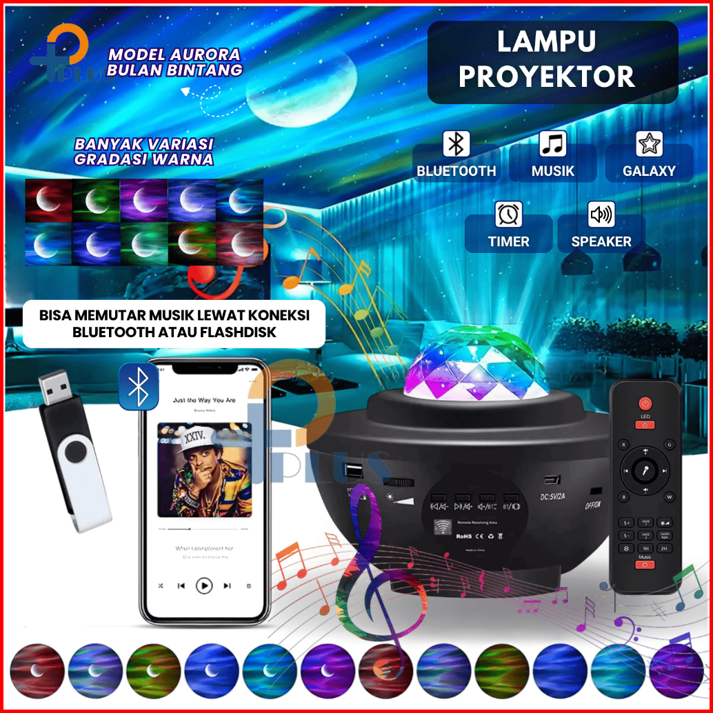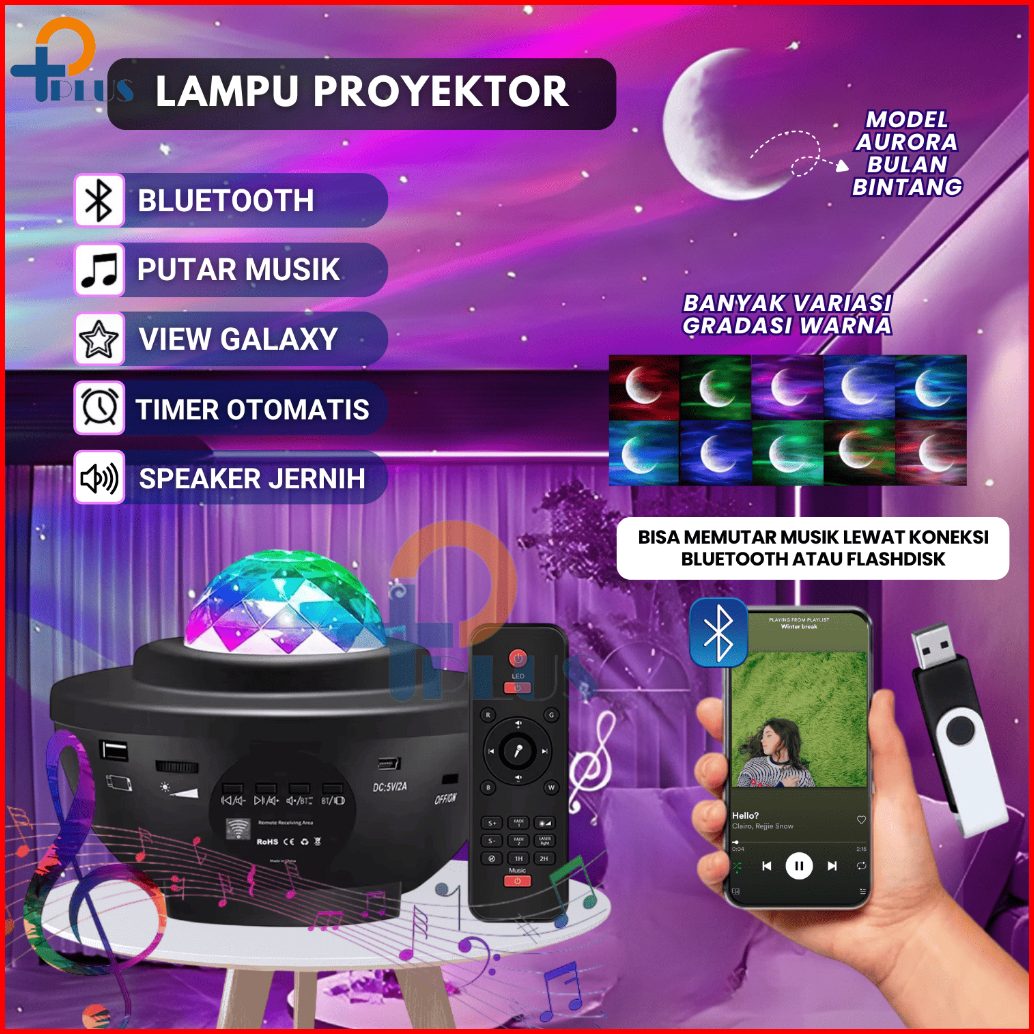Lampu Proyetor Aurora Dengan Speaker Langit Malam Bulan Bintang 2 In1 Lampu Starry Projector Light Lampu Tidur Lampu Tid