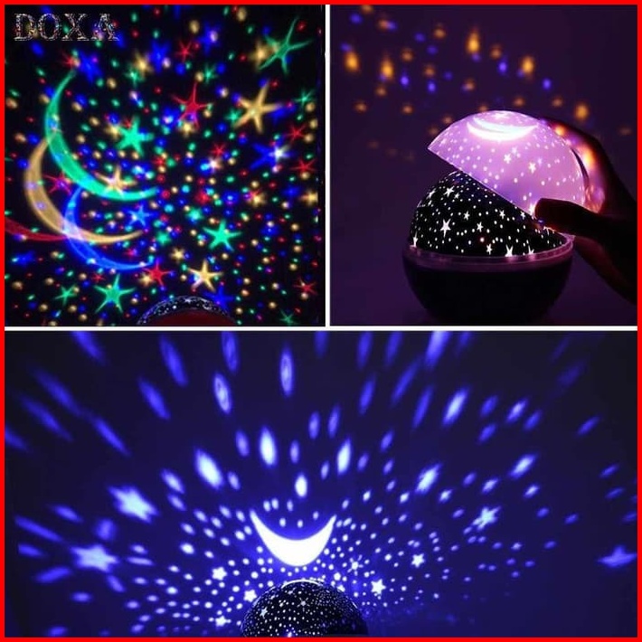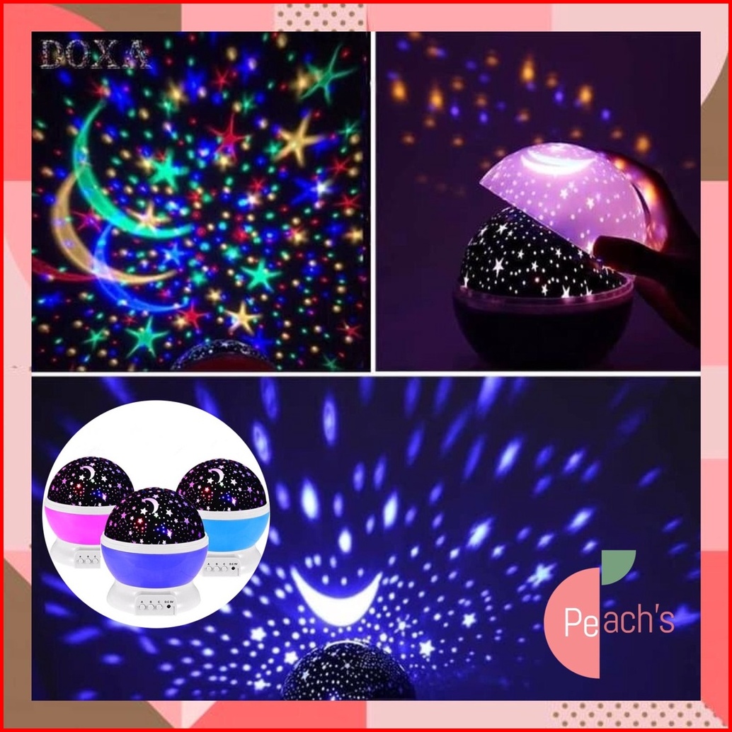 Peach Lampu Tidur Dengan Model Proyektor Desain Bulan Dan Bintang Untuk Kamar Tidur L5241