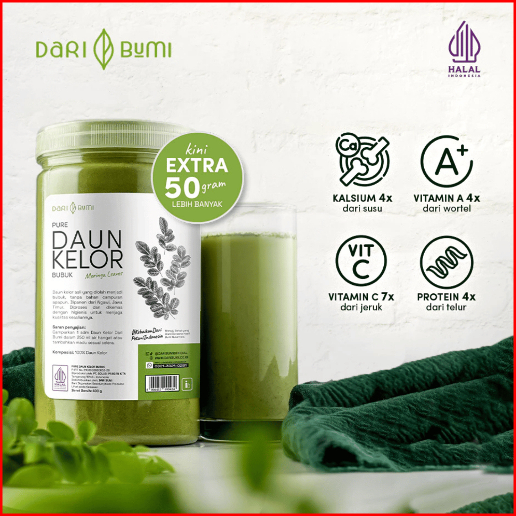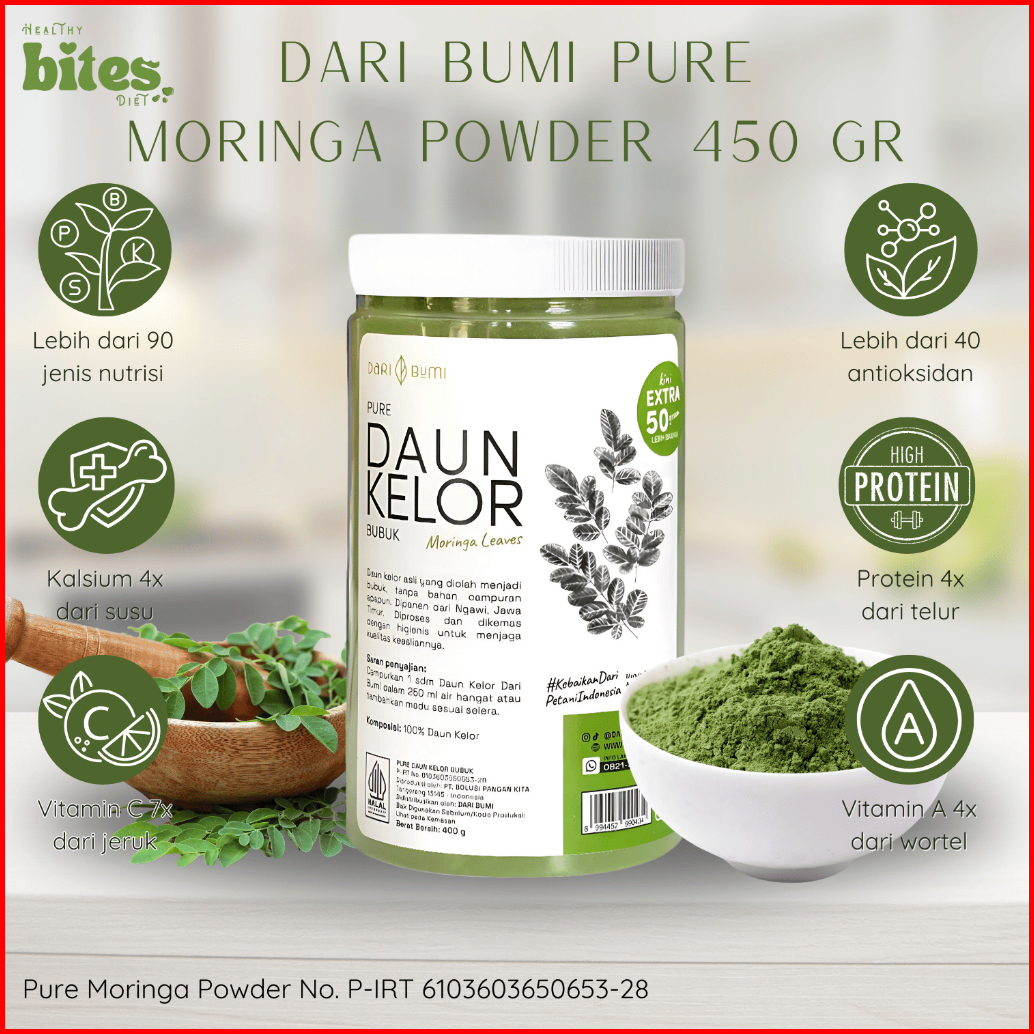 Daun Kelor Bubuk 450 Gr Dari Bumi Pure Moringa Powder Premium Moringa Pure Bubuk Daun Kelor Murni