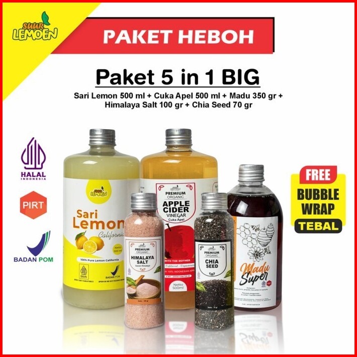 Suur Lemoen Paket Special 5in1- Paket Hemat Cuka Apel Sari Lemon Chia Seed Madu Hutan Garam Himalaya