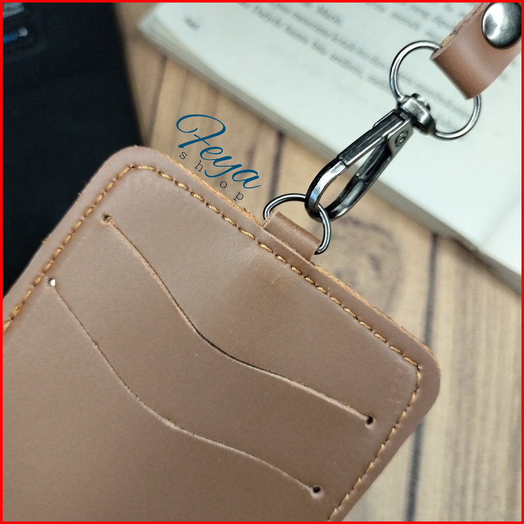 Name Tag Id Card Kulit Holder Lanyard Muat 2 Slot Kartu Termurah Berkualitas Nts035