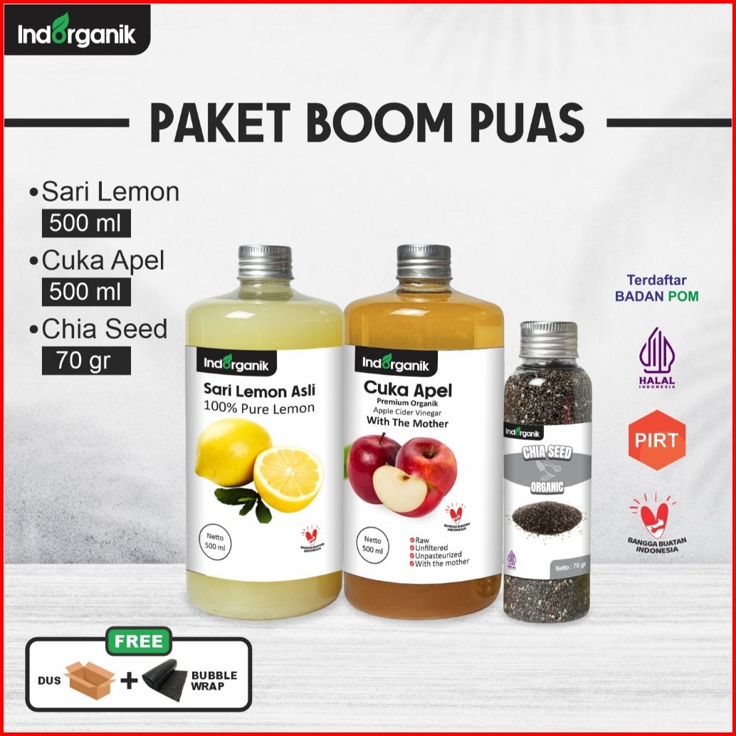 Indorganik - Paket 3in1 - Sari Lemon 500ml Cuka Apel 500ml Chia Seed 70gr