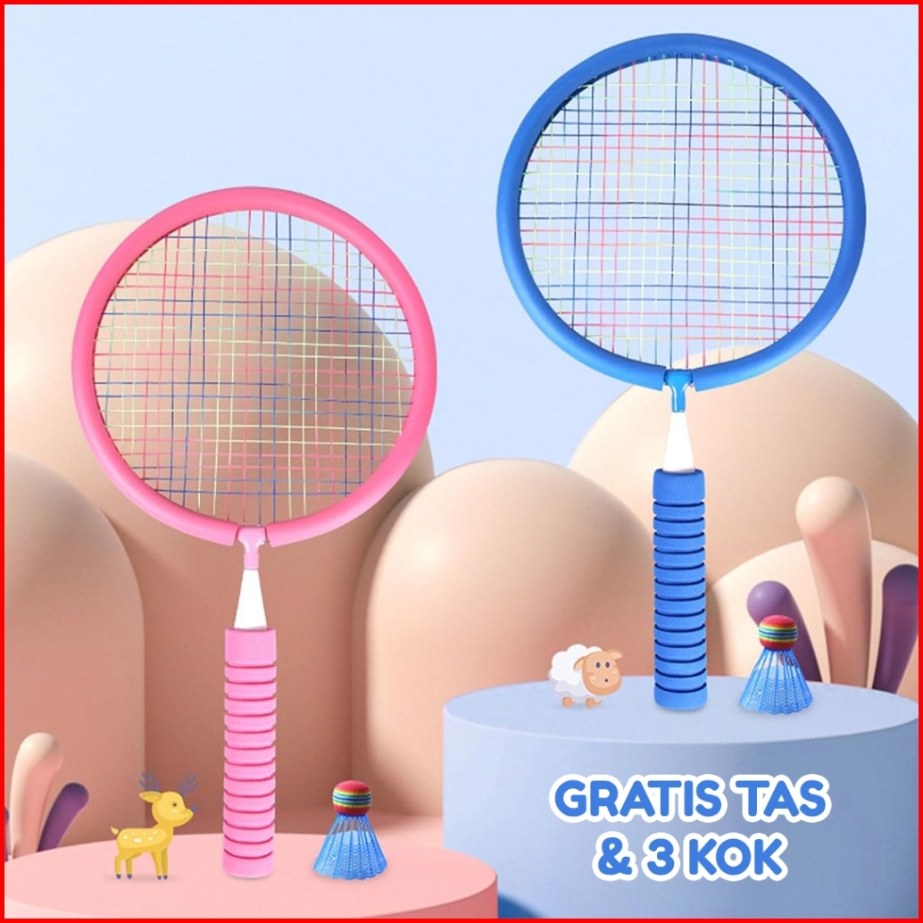 Bbak Set 2 Pcs Raket Bulutangkis Anak Raket Badminton Anak Umur 3-13 Tahun Gratis Tas Raket Lucu 3 Pcs Kok Kualitas Terb