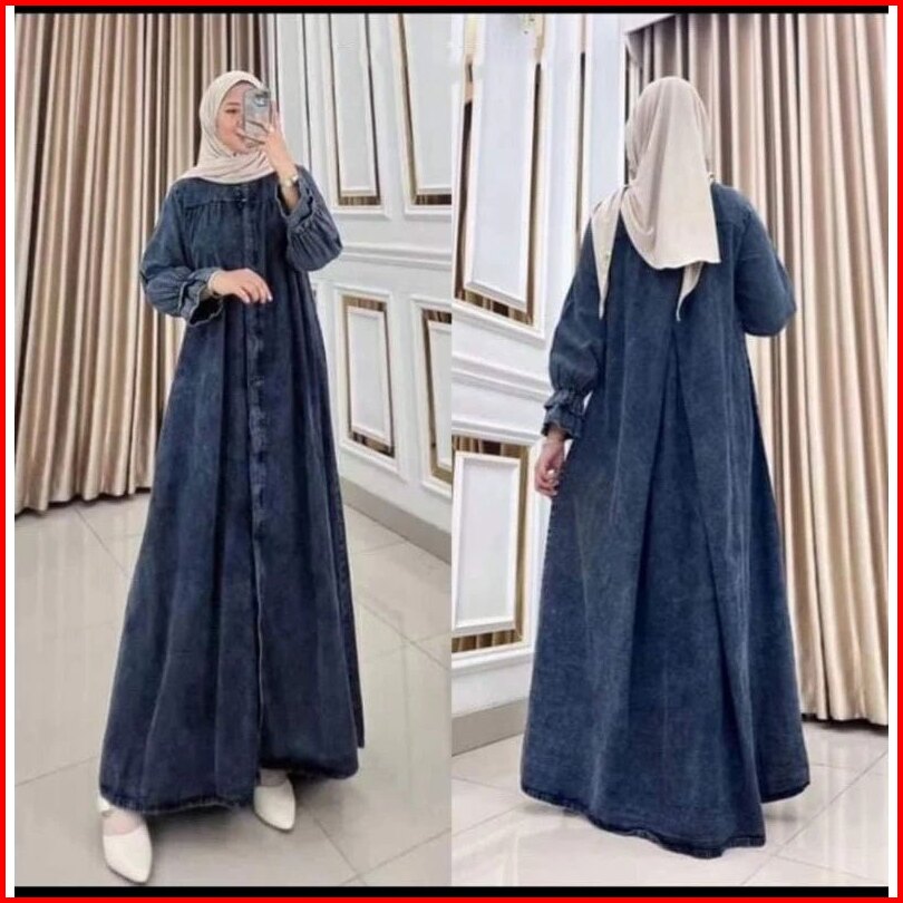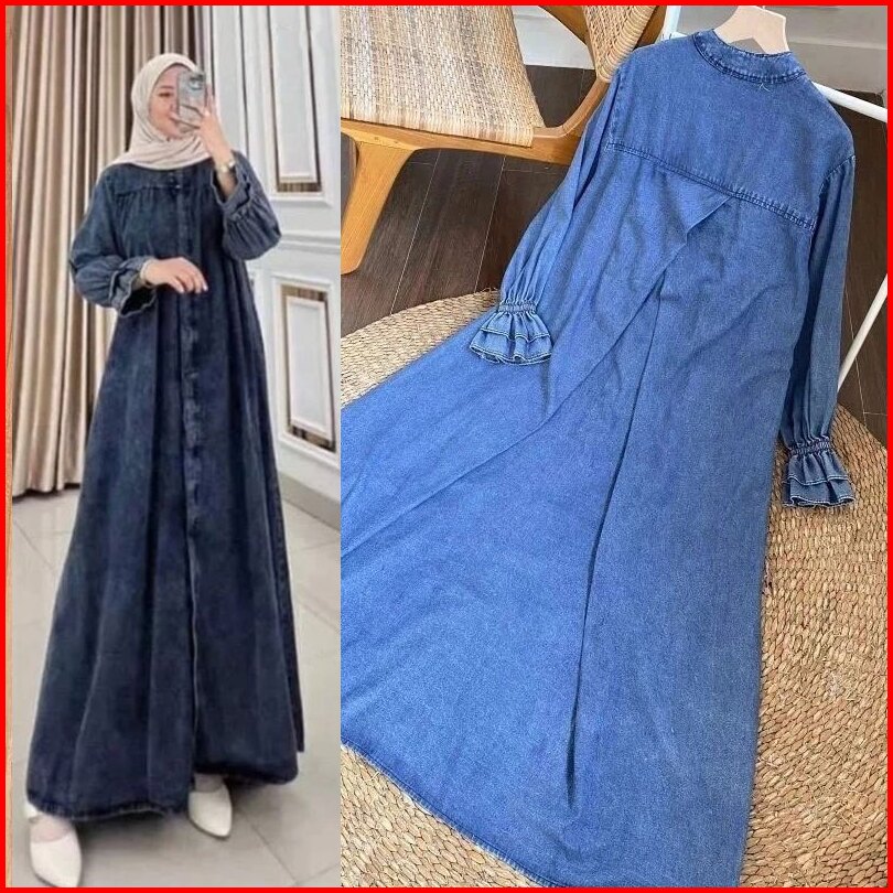 Marshanda Meisy Midi Dress Jeans Jumbo Wanita Gamis Denim Jeans Wash Premium Kekinian Busui Bajuratu