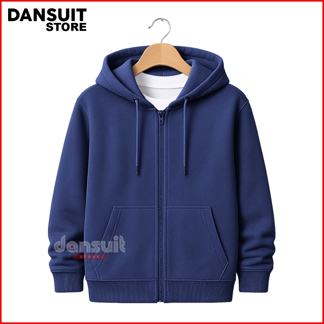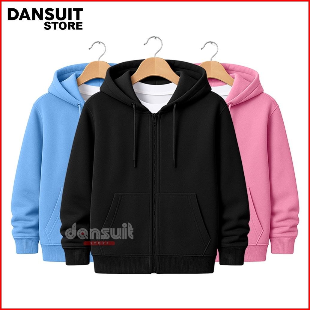 Jaket Hoodie Zipper Polos Anak Laki-laki Perempuan Umur 4-14 Tahun Bahan Fleece Tebal Premium