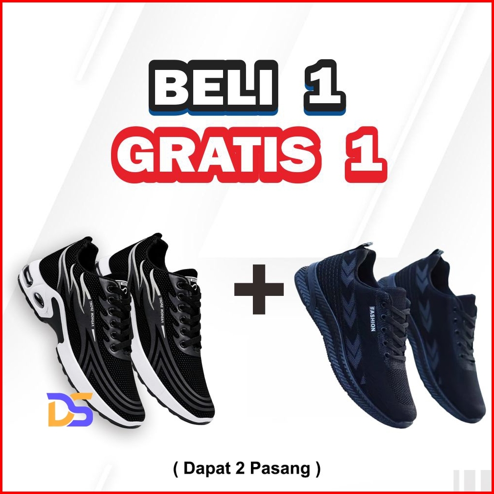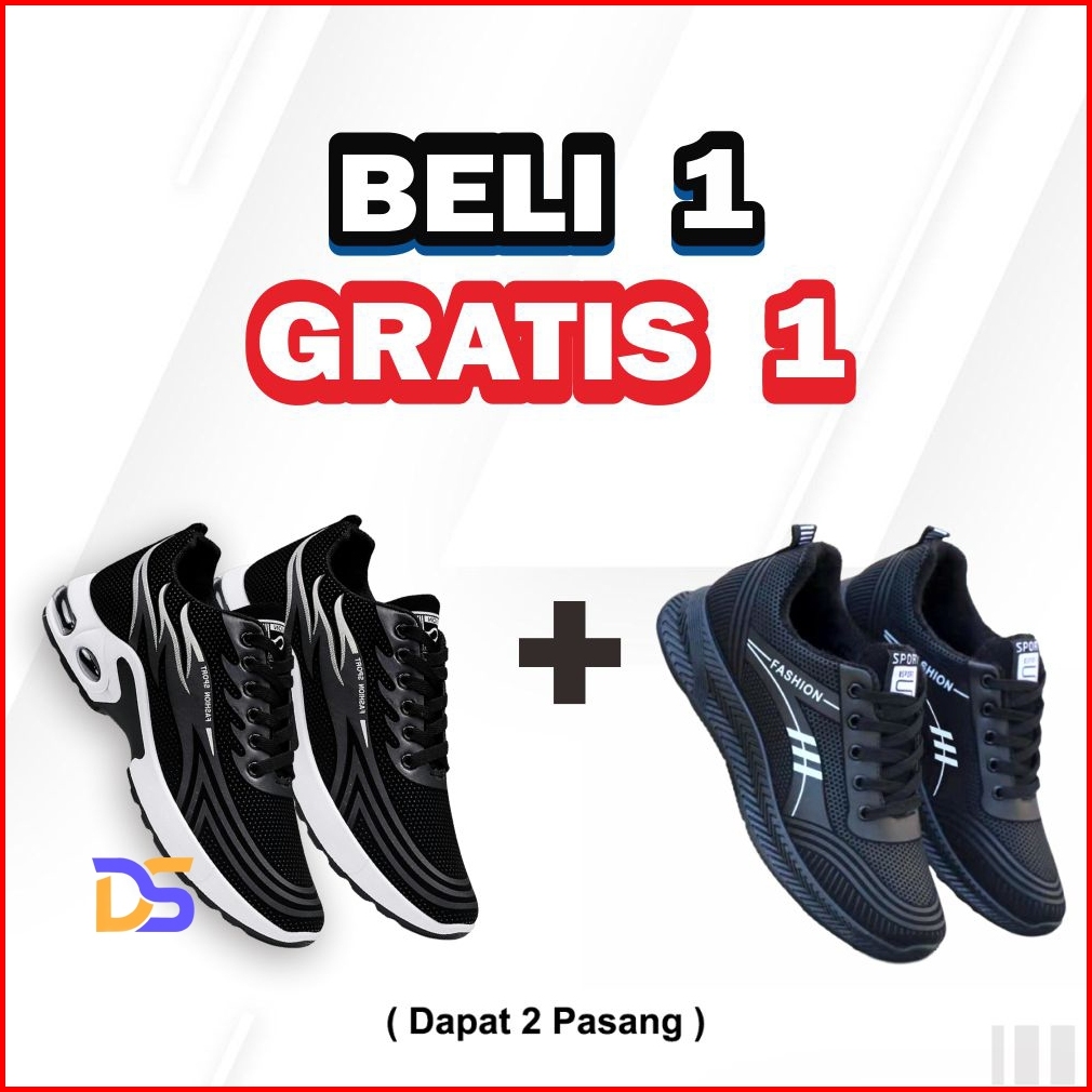 Beli 1 Gratis Promo Sepatu Pria Hitam Putih Dapat 2 Pasang Sneakers Casual Sepatu Olahraga Cowok