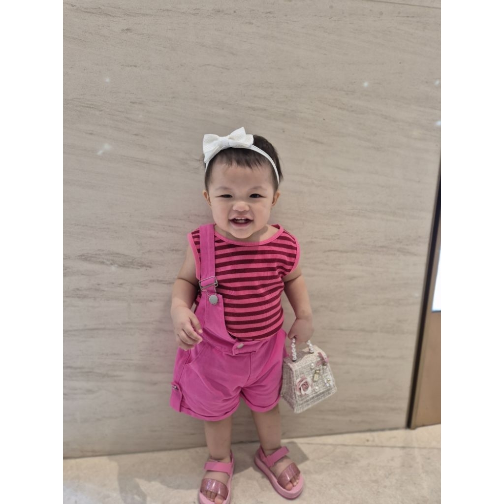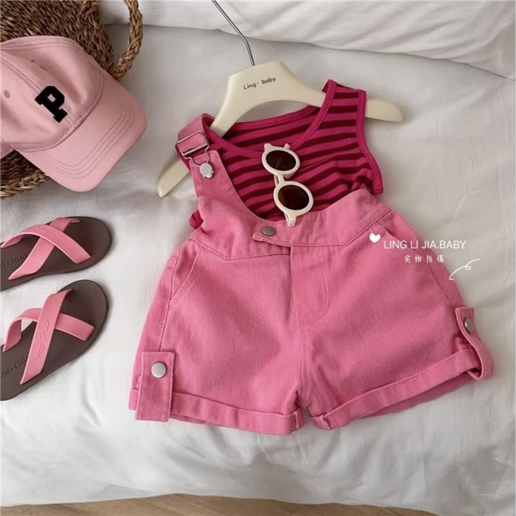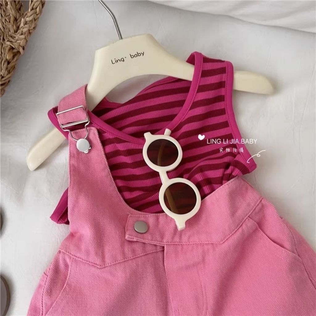 Set Pink Stripes Jumpsuit /Jumpsuit Anak/Set Pink Barbie Anak