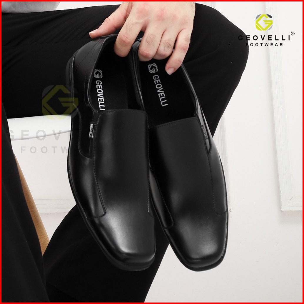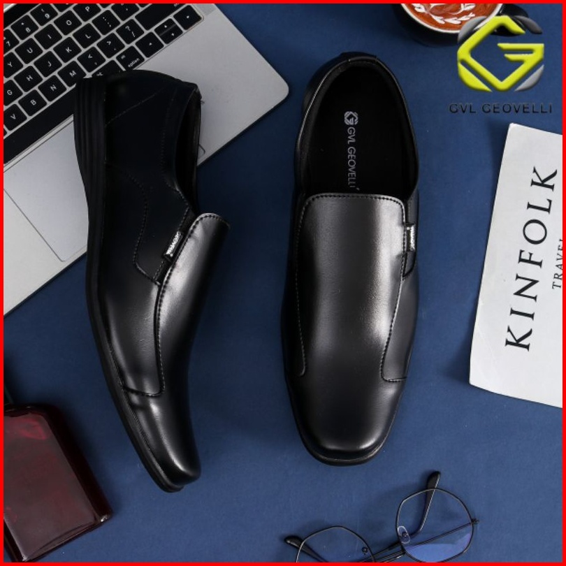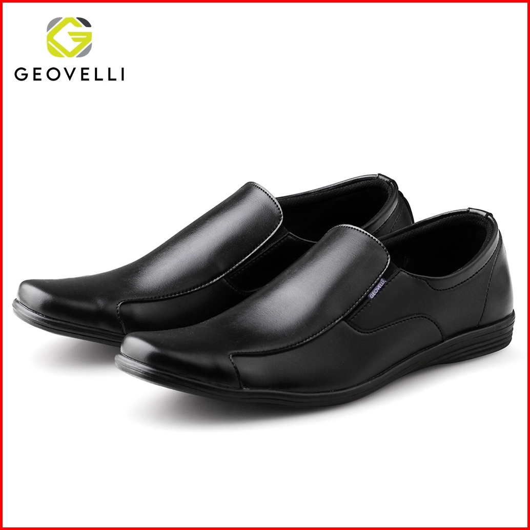 Geovelli Sepatu Pantofel Pria Kerja Kantor Casual Fashion Hitam Buatan Tangan Ready