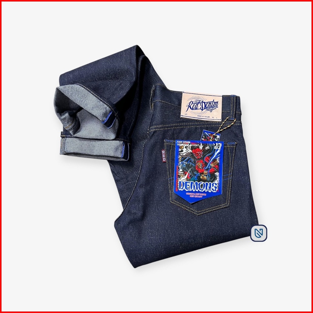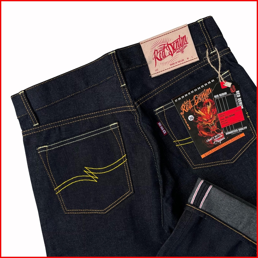 Red Denim - Denim Black Indigo 150z Sanforized Raw Denim Accent Selvedge Original