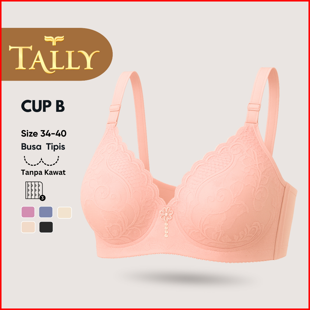 Tally Paket 1 Pcs Atau 3 Pcs Bra Tanpa Kawat Busa Tipis Bahan Katun Brokat Cup B Kait 3 Bra Harian Stretchable Bh 5233 4
