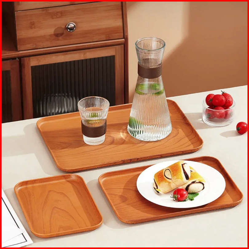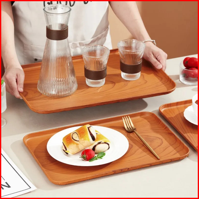Nampan Baki Aesthetic Nampan Saji Makanan Motif Kayu Serbaguna Nampan Cantik Untuk Cafe Restoran
