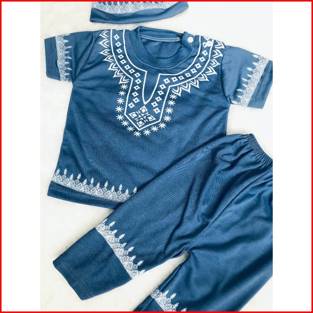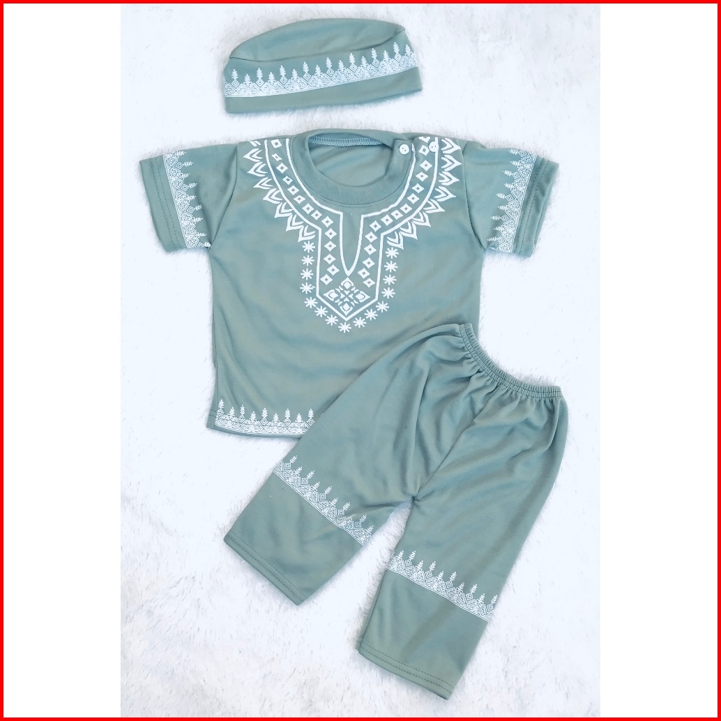 Baju Celana Setelan Koko Bayi Baju Bayi Muslim Ramadan Lebaran Bonus Peci Usia 3-12 Bulan