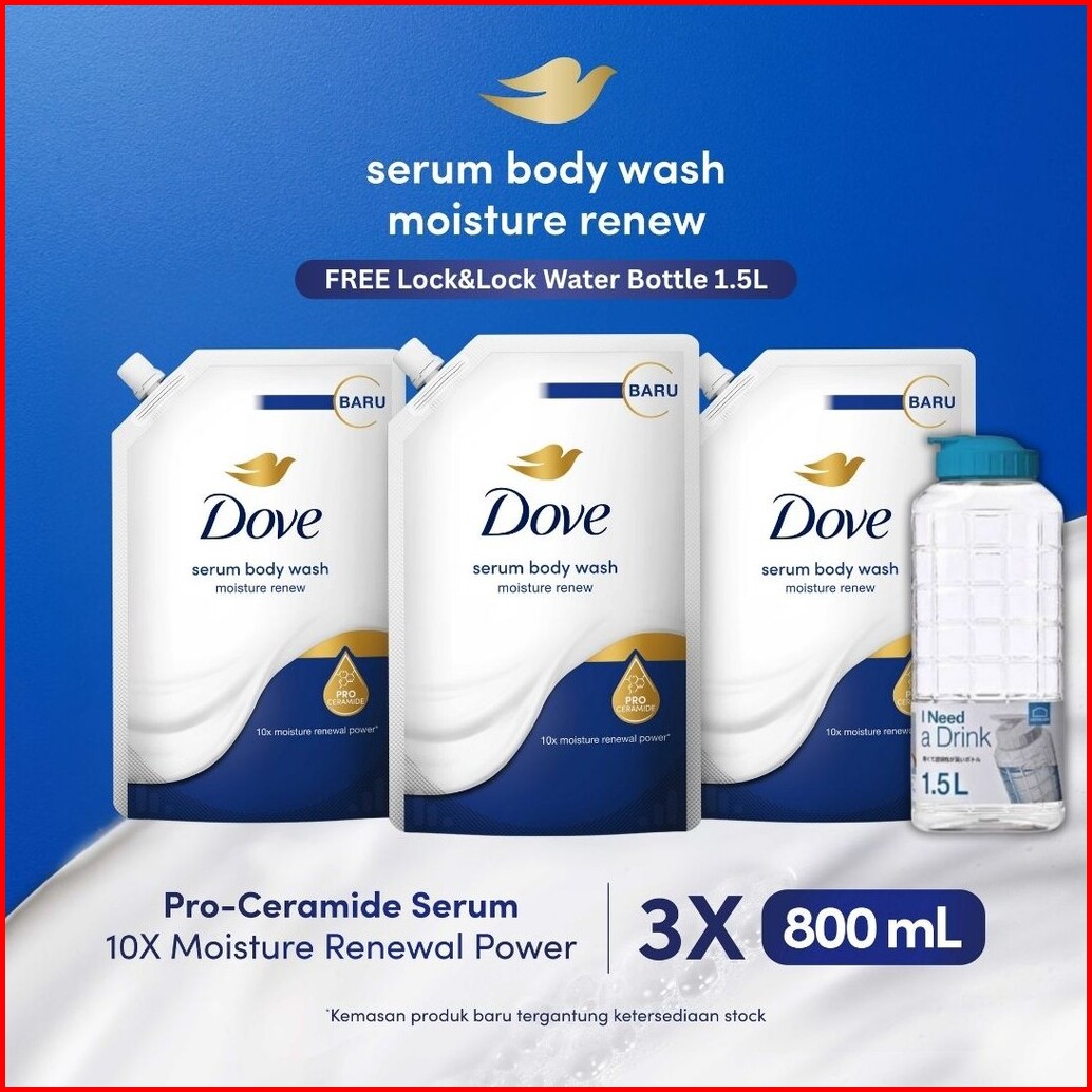 Buy 3 Dove Serum Body Wash Pro-ceramide - Moisture Renew 800ml Free Lock Lock Water Bottle 1.5l