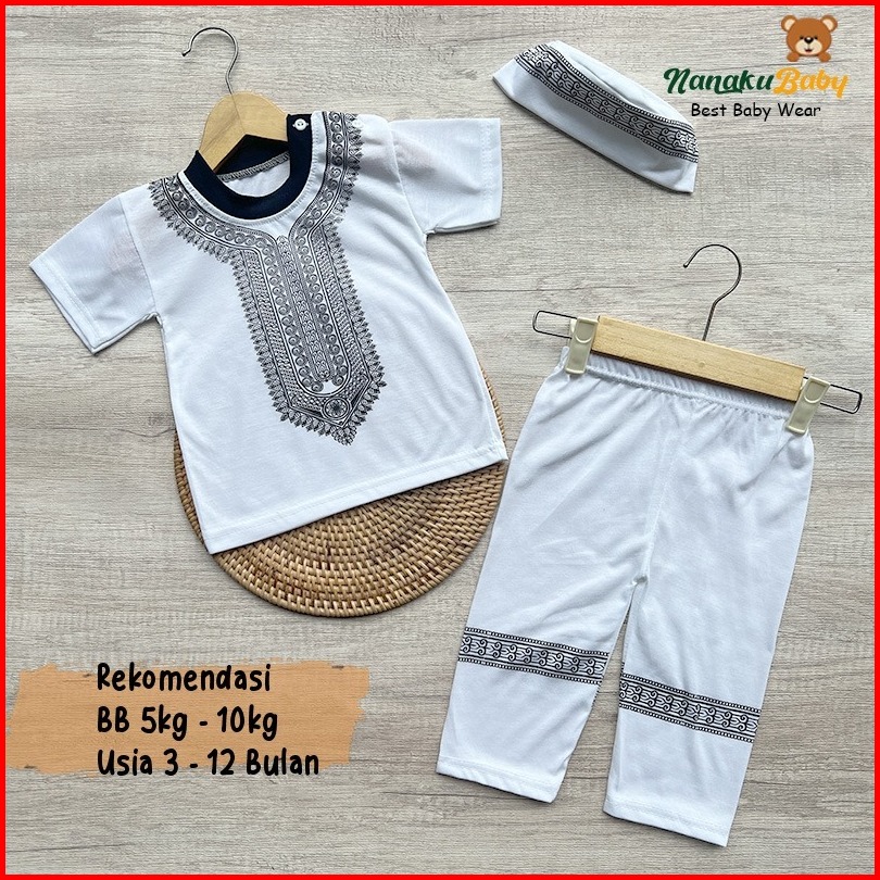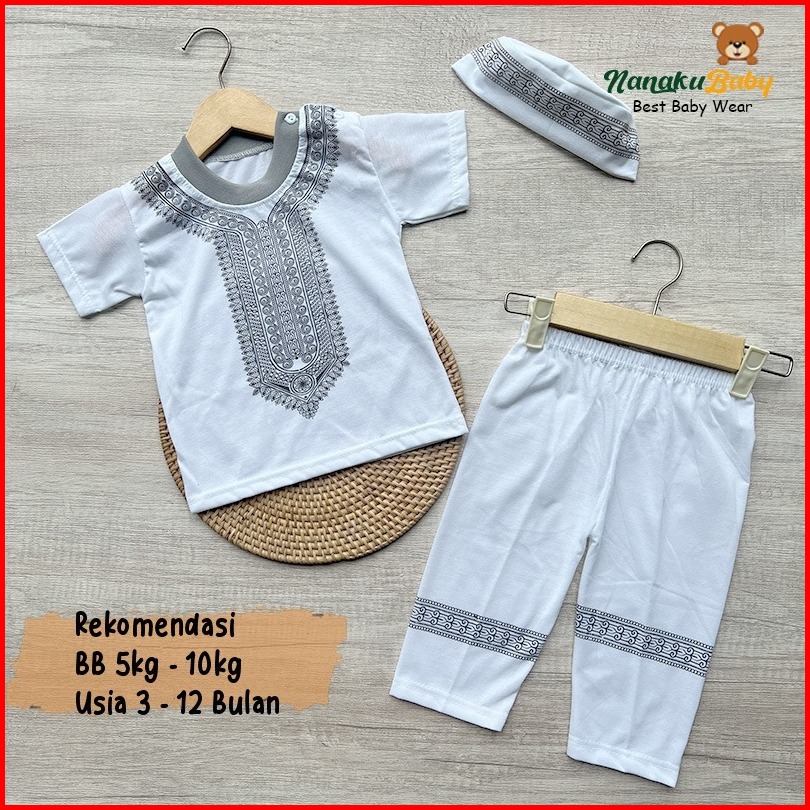 Nanaku Baby - Set Baju Koko Bayi Aqiqah Set Baju Muslim Bayi Free Peci Kancing Bahu Usia 3-12bulan