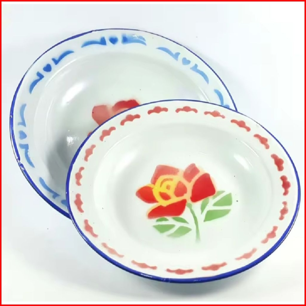 12 Pcs Piring Enamel Blirik Jadul Piring Seng Motif Bunga Diameter 22cm