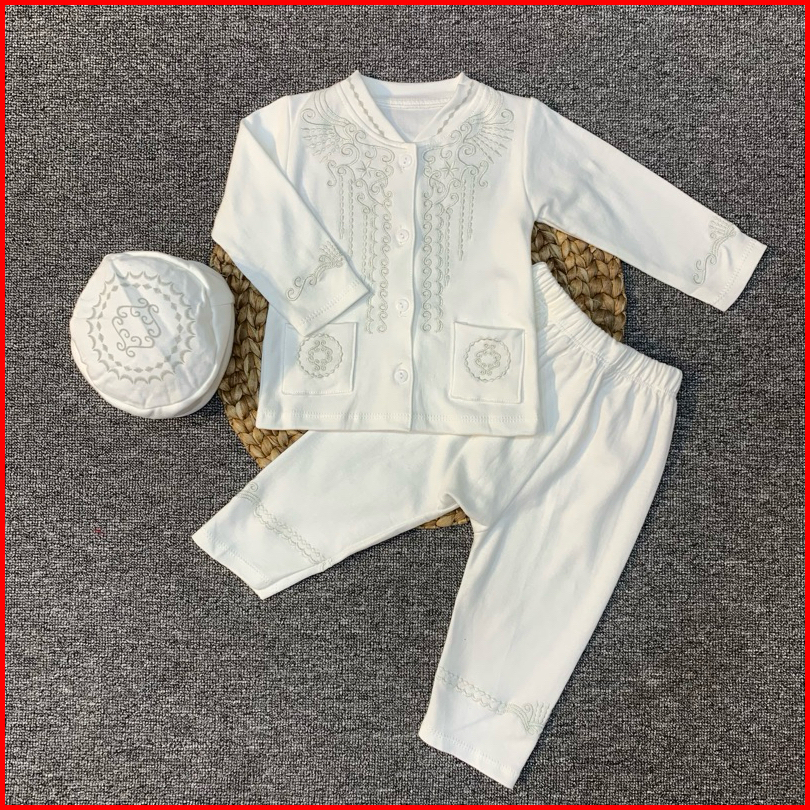 Setelan Koko Newborn Warna Putih Aqiqah Umur 0 - 40 Bulan.