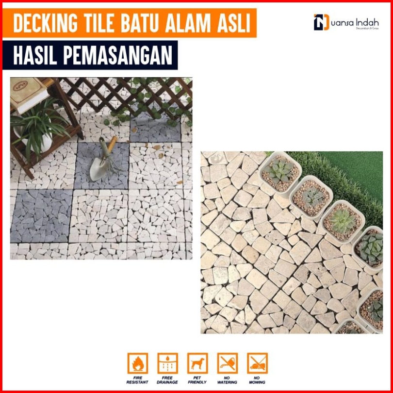 Decking Tile Batu Alam Asli Warna Cream 30x30 Cm