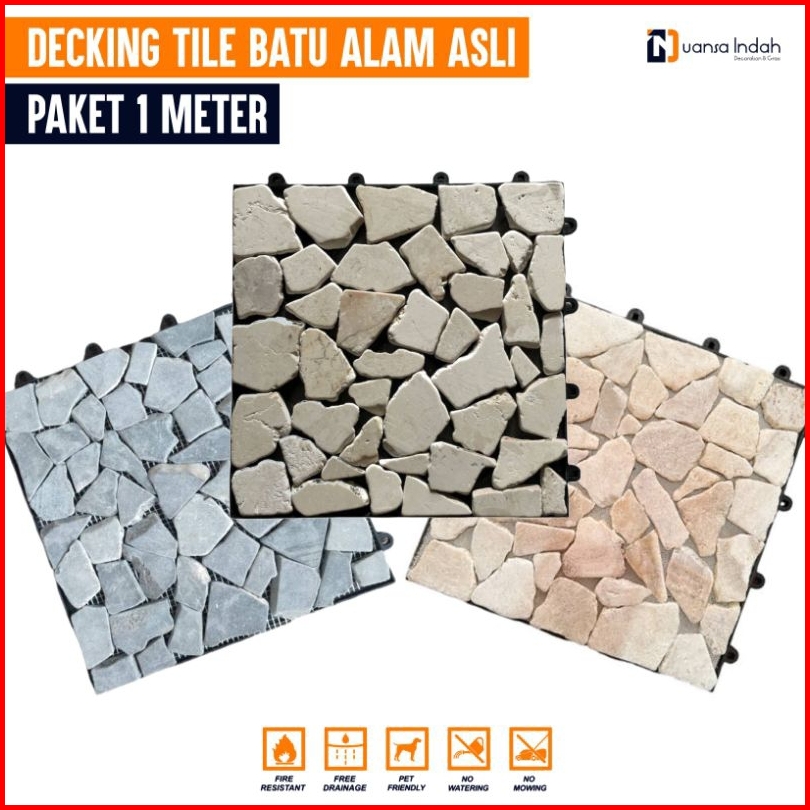 Paket 1 Meter Decking Tile Batu Alam Asli
