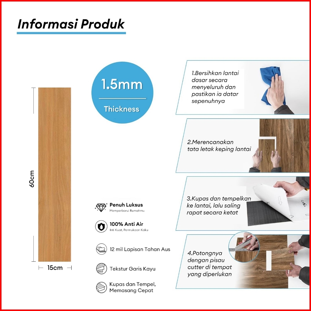 Model Baru Vinyl Stiker Lantai Kayu 60 15cm Lebih Lengke Lebih Tahan Lama Karpet Kayu Pvc