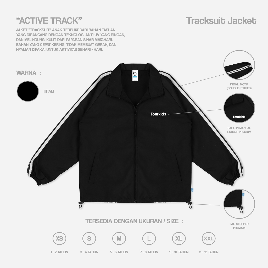 Fourkids Track Jacket Active Track Anak Laki-Laki Dan Perempuan Terbaru Tahan Angin Usia 1-14 Tahun
