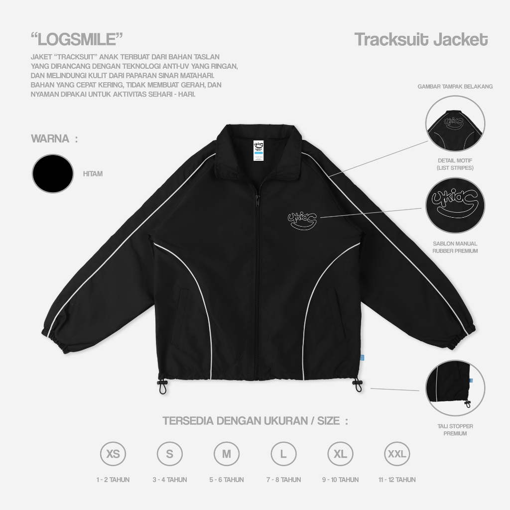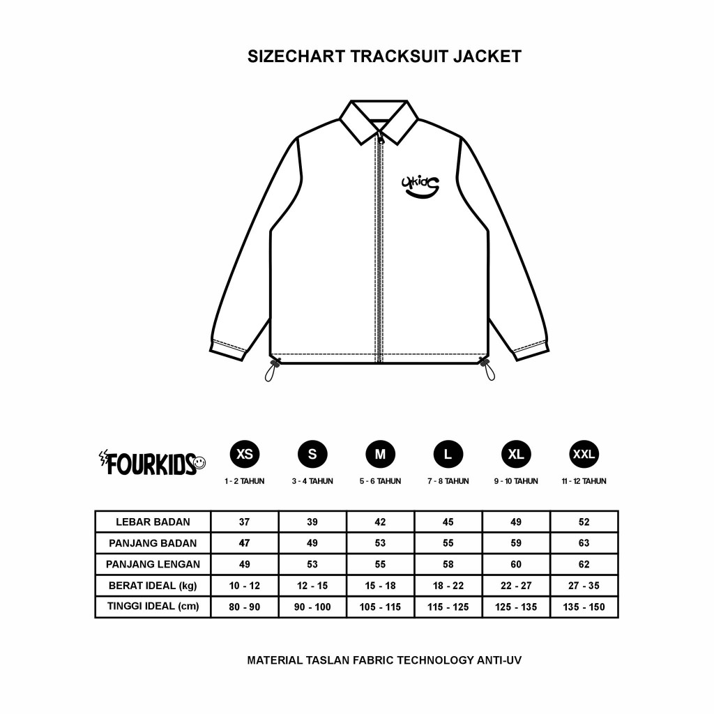 Fourkids Track Jacket Logsmile Anak Laki-Laki Dan Perempuan Terbaru Tahan Angin Usia 1-14 Tahun