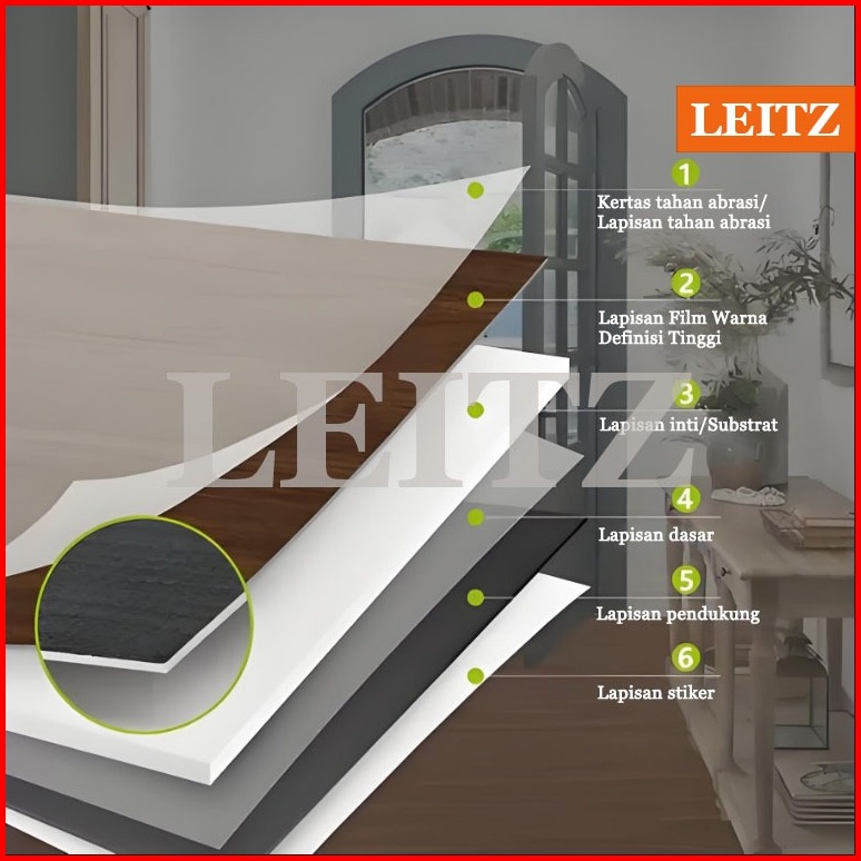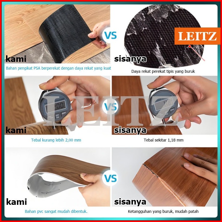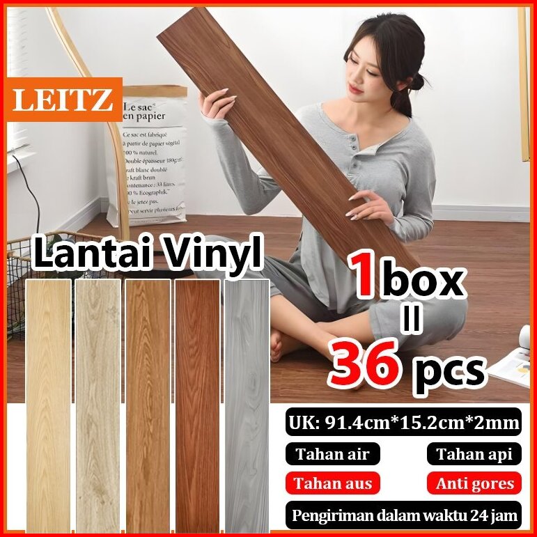 Leitz - Pvc Lantai Vinyl 1box 36 Pcs Vinyl Stiker Lantai Kayu Lantai Anti Slip Tahan Air Tahan Rayap Stiker Stiker Lanta
