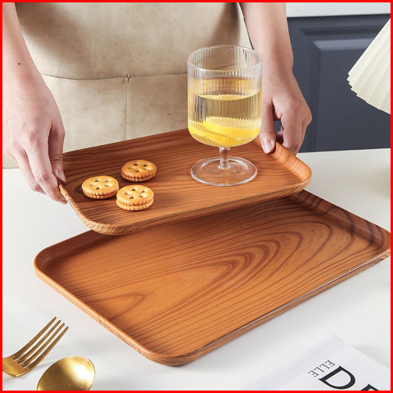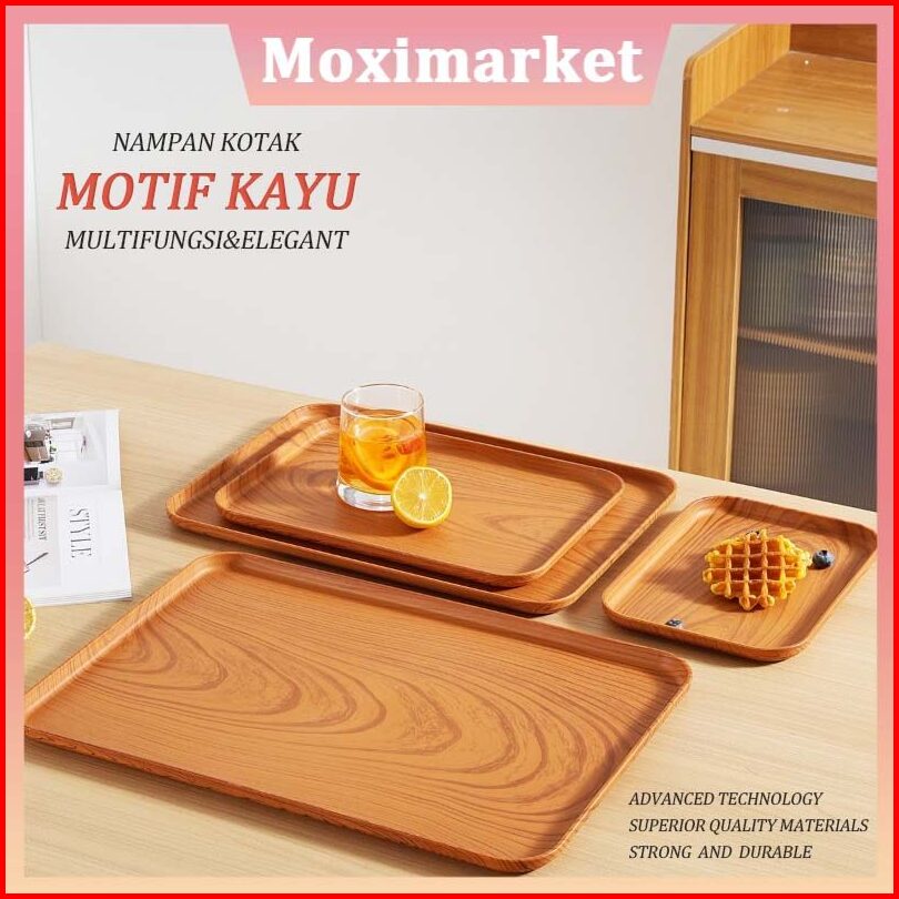 Nampan Kotak Motif Kayunampan Saji Aesthetic Kotak Tray Plastik Pp Motif Kayu Warna Coklat Muda Multifungsi Untuk Makana
